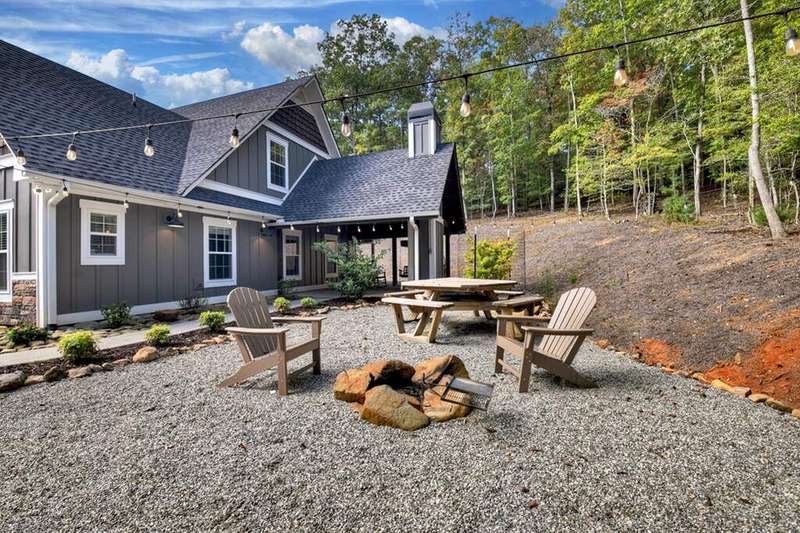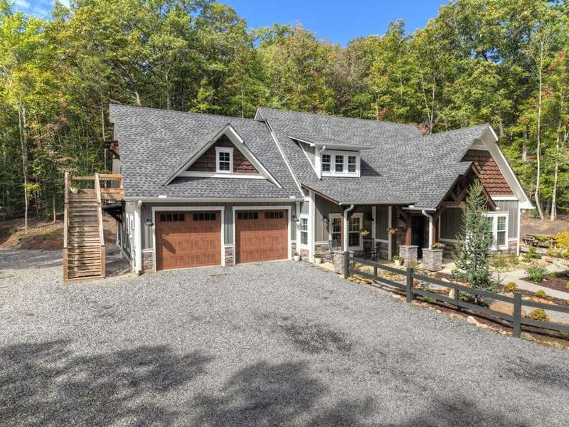 Discover this beautiful low-maintenance home featuring durable Hardie board siding & an inviting layout perfect for comfortable mountain living. Offering 4 BR, 2.5 BA, this property combines modern finishes with serene privacy near the end of a quiet, county-maintained gravel road-just minutes from Hwy 515 for easy access. The main level boasts an open-concept kitchen with granite countertops, stainless steel appliances, and a spacious great room complete with a fireplace and gas logs. The primary suite is conveniently located on the main level and features a custom bath, while the large laundry room, oversized pantry, and an additional guest room or office add everyday convenience. Upstairs you'll find two bedrooms with a shared bath, a large loft area ideal for a sitting room or play space, and a versatile bonus room above the garage-accessible by a separate entrance-offers endless possibilities for a studio, home office, or guest suite. Outdoor living is a highlight with a cozy patio and wood-burning fireplace, firepit area with picnic table, raised flower beds, fenced garden area, and a reliable artesian well. The oversized 2-car garage includes a workshop area, and there's an additional detached 2-car carport for extra parking or storage. Stepless entry into the main level ensures easy accessibility throughout. Private, peaceful, and move-in ready!