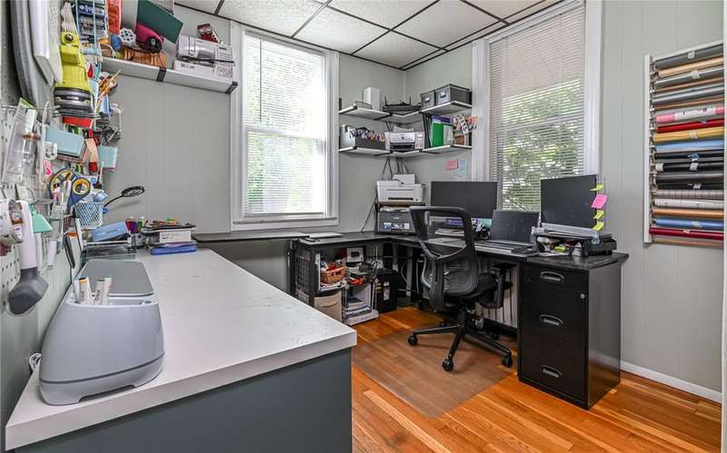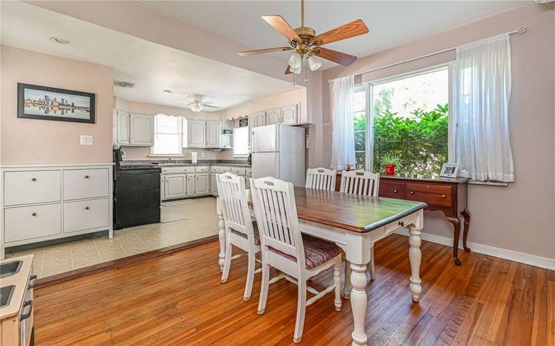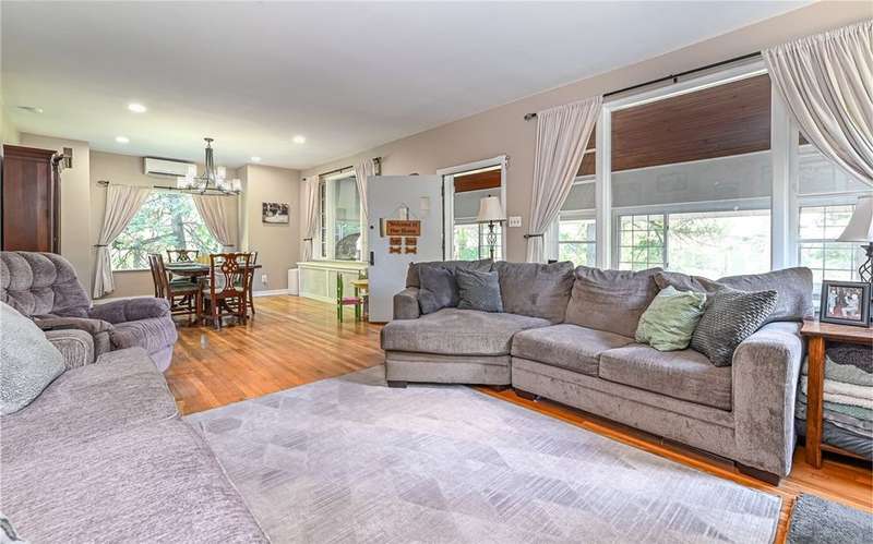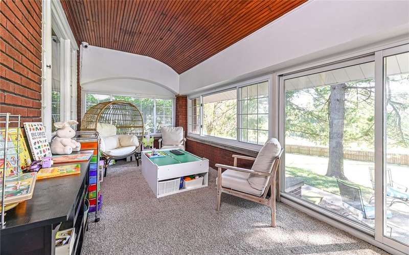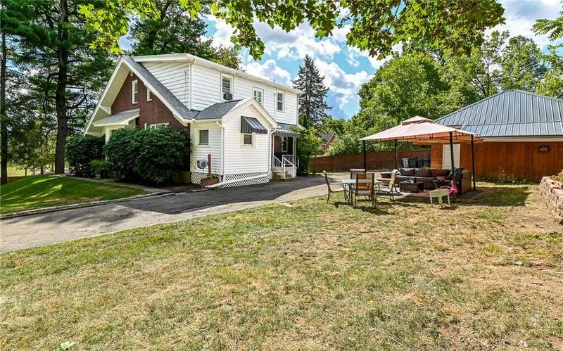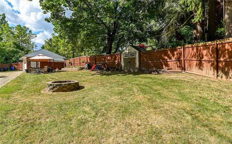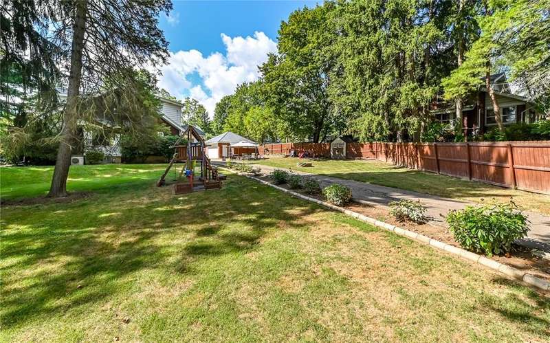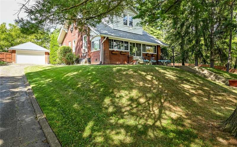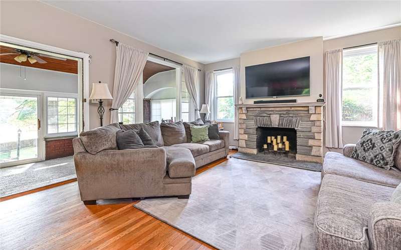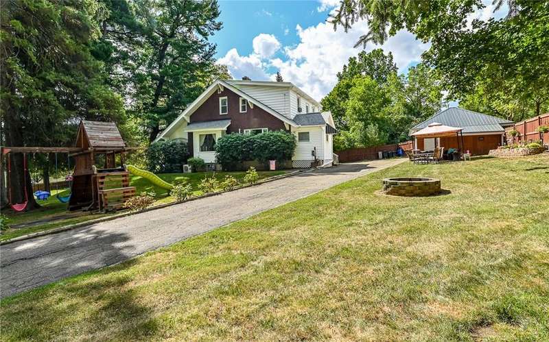 Don't miss out on this bright & airy home w/open floor plan nestled on a .75 acre park-like setting. Soaring high ceilings w/gleaming original hardwood flooring throughout this spacious home w/newer roof & gutters. Huge fully equipped eat in kitchen w/plenty of cabinet & counter space to inspire your inner chef. Gracious sized living & dining room area w/stone cozy wood burning fireplace. Sun drenched three seasons room adds additional play, crafting or seating room on main level. Main level is complete w/den & full bathroom. Second floor features oversized bedrooms, full bathroom & huge walk in linen closet. There is no shortage of closet & storage space in this home. Master bedroom has an additional space that is perfect for a dressing room, etc. Finished game room w/large laundry room & another full bathroom. Enormous fenced in yard w/gated entrance is an entertainers delight. Yard is complemented by a two-car detached garage & two storage sheds all equipped w/electric.