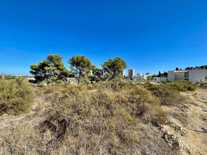 Lucas Fox presents one of the best plots to build a detached villa in the new area of Vistahermosa Norte. It is a plot of 981 m² with a facade of 20 metres, with a buildable area of 50%. Thus, a villa of up to 490 m² could be built, with a swimming pool and private parking, distributed over 2 floors, plus the solarium and the lower ground floor. As the plot is located in the upper area of Vistahermosa Norte, it enjoys unobstructed views of the entire area and the mountains of Alicante. It is surrounded on three sides by already built villas. This high-standard development is in the process of being built and in the next two or three years, it will reach a point of development like the PAU 5 zone in recent years. For this reason, this plot could be very interesting as an investment for the future. Nearby we have two shopping centres, schools and colleges, hospital, medical centre and several restaurants. In addition, it has excellent access to the city centre at 6 minutes, with the beach at 10 minutes, with the access to the motorway at 4 minutes and with the train station at 7 minutes. If you are looking for a plot to build your future home for you and your family, this could be an excellent option. In addition, there is also the possibility of acquiring a plot of 660 m² or one of 1,637 m².