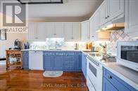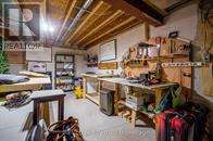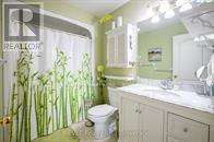 Welcome to this meticulously cared-for brick bungalow in Glen Brooke Estates, offering 1,360 sq ft of elegant main floor living in the heart of Niagara-on-the-Lake. The main level features a bright and spacious living room with cathedral ceilings and a cozy gas fireplace, a separate formal dining room, and a generous kitchen with Corian countertops, built-in dishwasher, and a charming dinette. Sliding doors lead from the dinette to a 20 x 12 wood deck, perfect for relaxing or entertaining. The primary bedroom boasts a walk-in closet and a private 4-piece ensuite. A second bedroom has been thoughtfully converted into a versatile den, study, or home office. There is also a convenient 2-piece bathroom off the dining room and main-floor laundry just off the kitchen. Direct access to the attached single-car garage adds ease and convenience. The finished lower level offers a large family room, a spacious guest bedroom, a 3-piece bathroom, and a substantial utility room with a new high-efficiency Lennox furnace and A/C. Additional features include a dedicated workshop, and storage area. Backing onto city-owned green space and a peaceful municipal reservoir fed by Four Mile Creek, this home combines natural beauty with low-maintenance living. Condo fees cover all exterior maintenance, lawn care, snow removal, building insurance, water costs, Bell Fibe Internet & TV. This well-maintained one-story townhome complex is highly sought-after in the vibrant community of Virgil. (id:7434)