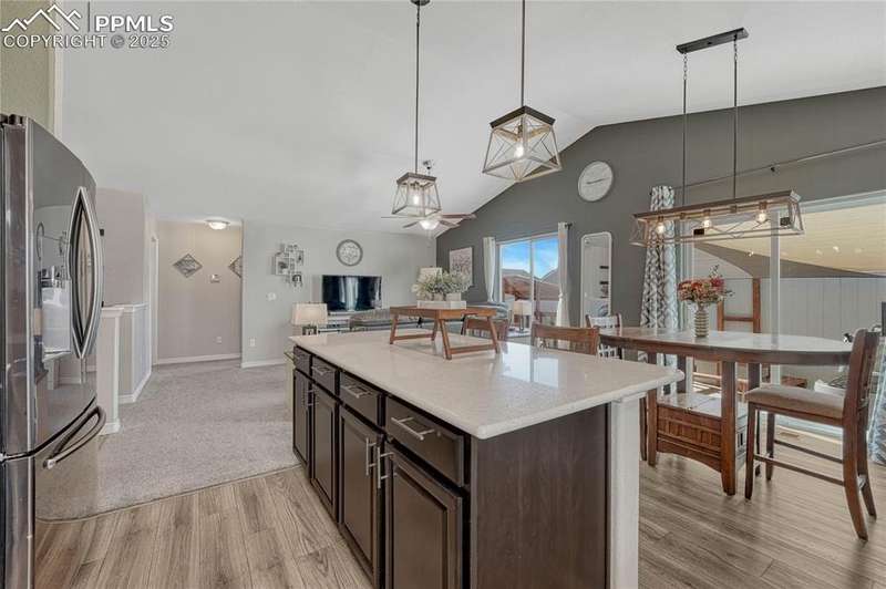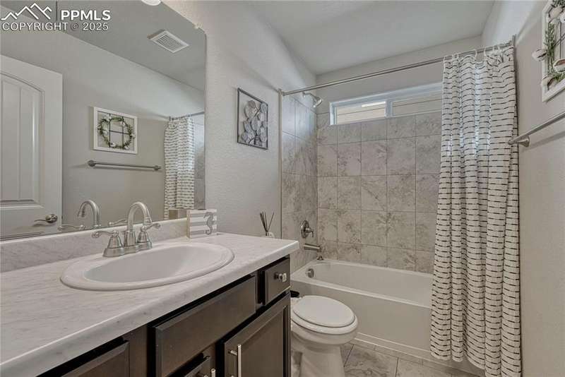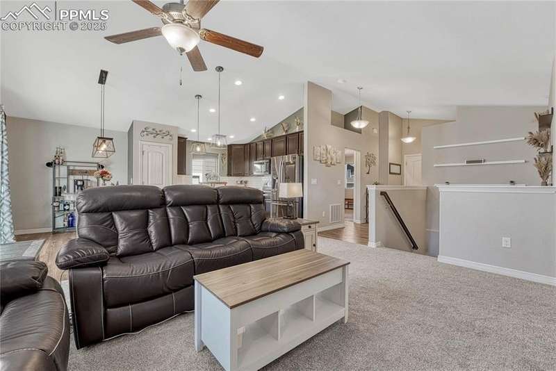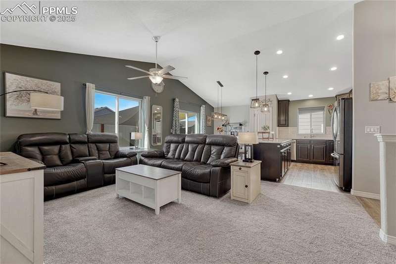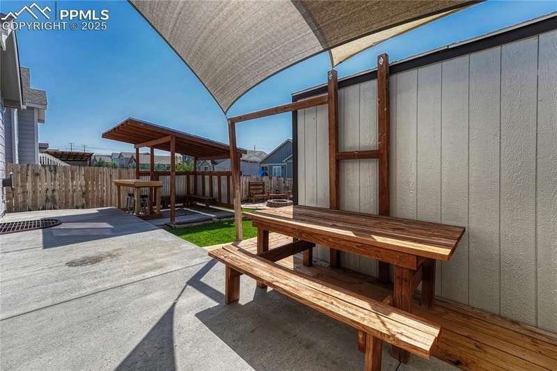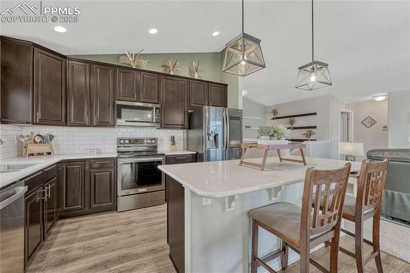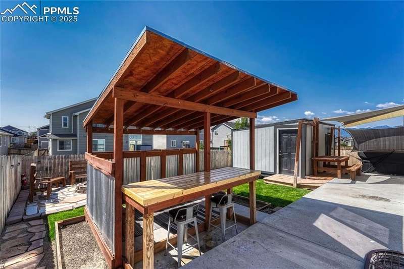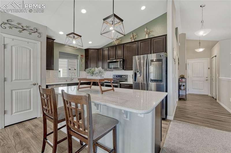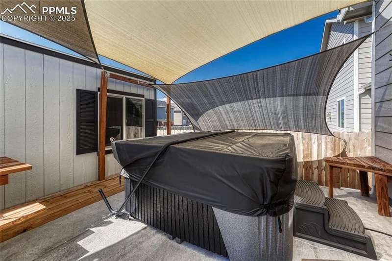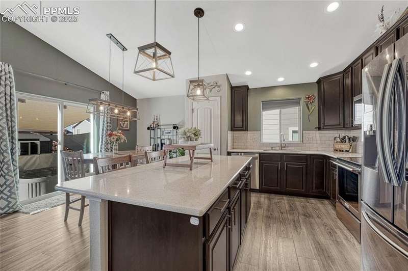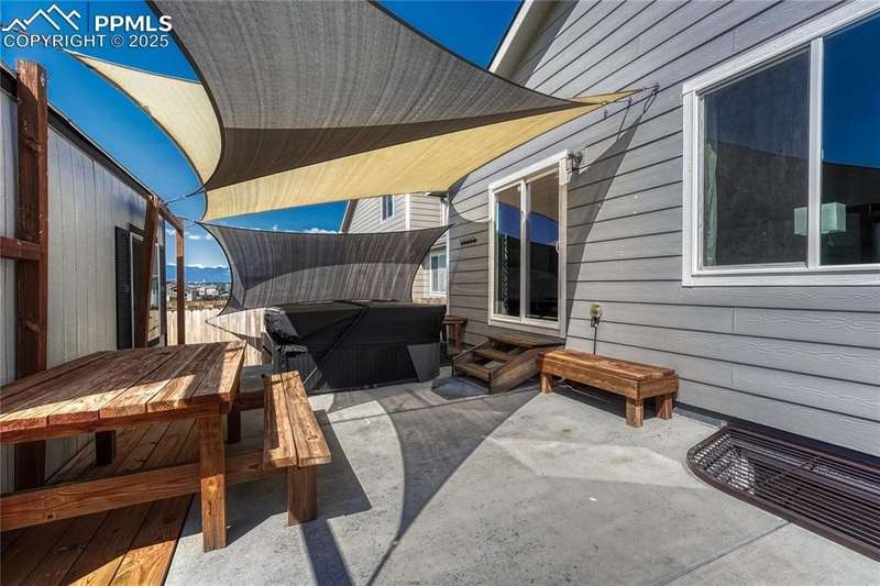 This is more than just a house — it’s a place designed for living well, entertaining often, and making memories both inside and out. Once inside you’ll immediately notice the open, airy feel created by vaulted ceilings in the living room. The layout is designed for everyday functionality, with a convenient main level laundry room, and engineered wood flooring flowing through the entry, kitchen, and dining areas, The kitchen is truly the heart of this home — stylish, functional, and ready for gatherings. You’ll love the granite countertops, subway tile backsplash, and 42” upper cabinets with crown molding for extra storage and style. Modern pendant lights over the island pair beautifully with the updated dining room chandelier, creating a cohesive and inviting space to cook and connect. And with a Samsung touchscreen Smart Fridge, new dishwasher and pantry, this kitchen is as practical as it is beautiful. The primary suite is a relaxing retreat, complete with a walk-in closet, and a spacious 5-piece attached bath. Downstairs, the finished basement offers a spacious rec room along with two additional bedrooms, creating the perfect setup. And when it’s time to unwind or entertain outdoors — this backyard is ready! A sliding glass door from the dining area leads to an expansive concrete patio that runs the length of the home, complete with three shade sails for comfort on sunny days. Soak in the hot tub, gather around the built-in fire pit, or relax at the backyard bar. A stone path walkway leads you right to the fire pit — perfect for cozy evenings with friends. Additional exterior features include a garage utility door, window well covers in the backyard, a covered front entry, garage shelving for storage, and an extra backyard structure that functions well as a shed — with potential to customize or upgrade if desired. Practical upgrades like a Culligan water softener (2023), new upstairs carpet (March 2025), add even more comfort to this already impressive home.