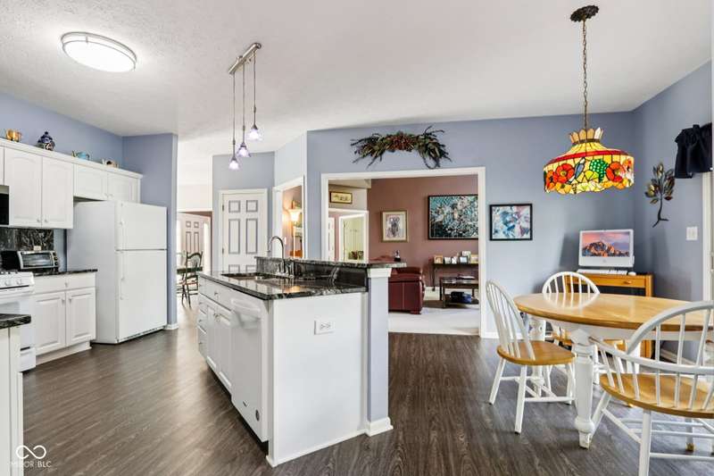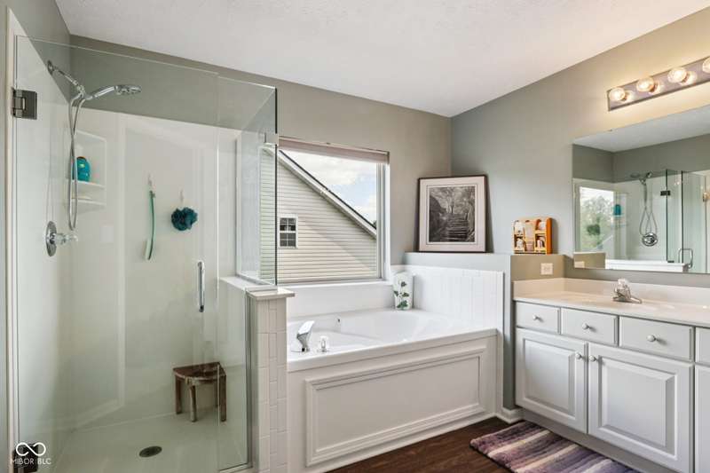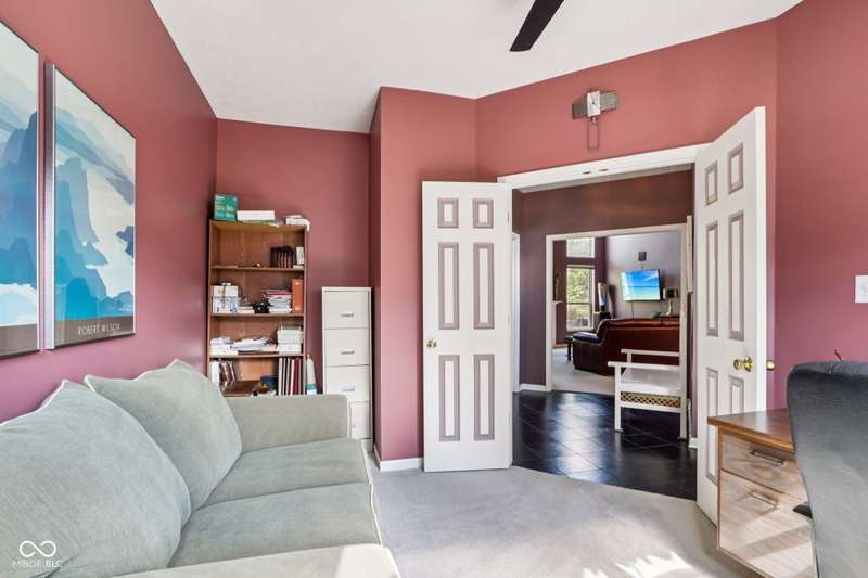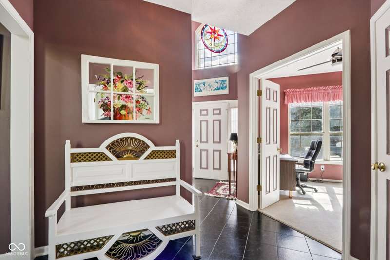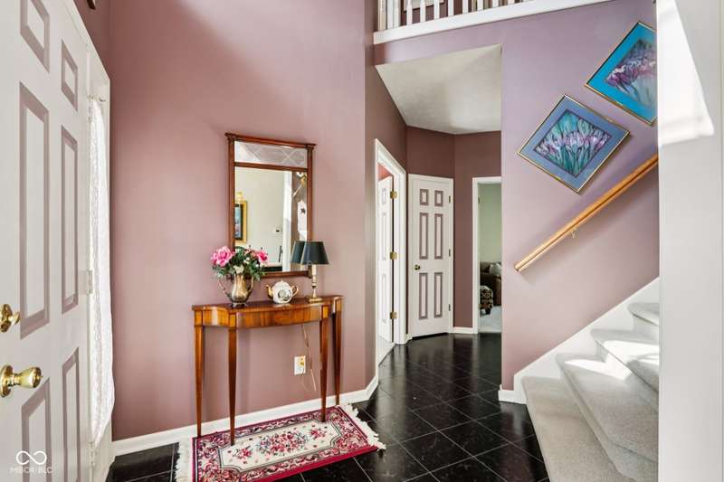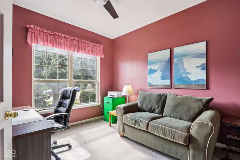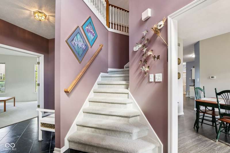 Welcome to this beautiful 4-bedroom, 3-full-bath one owner home in the highly sought-after Stone Haven at Haverstick neighborhood. This light-filled home features towering ceilings in the living room with a gas log fireplace and large windows that bring in tons of natural light. Enjoy both a formal dining room and a casual breakfast nook, perfect for everyday living and entertaining. The large kitchen with Granite countertops and island is a chef's dream. The main level also offers a flexible bonus room (ideal for a guest bedroom or playroom) and an office. Upstairs, the primary suite impresses with vaulted ceilings, a cozy sitting area, walk-in closet, and a spacious en suite bath with double sinks, a soaking tub, and a separate shower. *Entire interior to be painted 11/7. An unfinished basement provides excellent storage space or the opportunity to add more living area down the road. Step outside to a large deck with a natural gas grill, leading down to a patio surrounded by mature trees and beautifully landscaped gardens-a perfect spot for relaxing or entertaining or head over to the Community Pool, Tennis Court and Playground. Situated in the heart of East Carmel, this home blends comfort, functionality, and curb appeal in an unbeatable location.