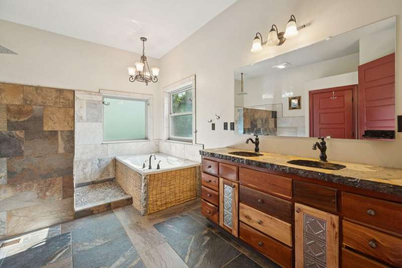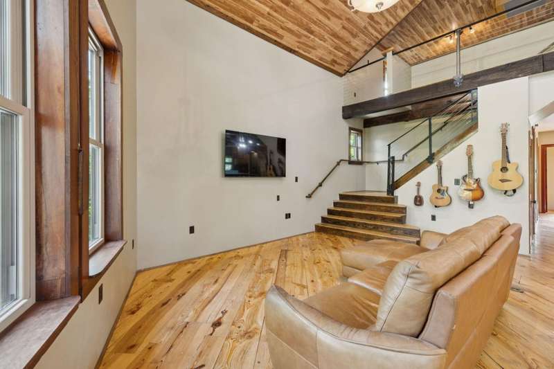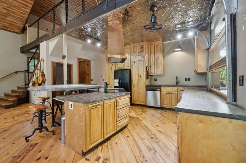 Eclectic Haven Discover 1014 Meroney Street, an eclectic 3-bedroom, 3.5-bathroom custom home on 0.33 acres in a tranquil cul-de-sac North Chattanooga. Just over a mile from Coolidge Park's vibrant shops and dining. This gem welcomes you with an 8-foot round-top front door with metal straps, a circular driveway, and two large rear garages for ample parking. The side deck offers ridge views, sunrises, sunsets, and distant festival music or fireworks, an outdoor kitchen with a sink and grill.Step inside to locally sourced wood floors, crafted from felled trees, atop 10-12-inch concrete basement walls. The kitchen dazzles with concrete countertops, a large concrete island, spalted maple cabinets with roll-out drawers and spice racks, two dishwashers, and a glass garage door connecting to the outdoor kitchen. It opens to a great room with 26-foot angled ceilings and a 9'x4' custom dining table, perfect for entertaining. The master suite features an 8-foot glass door to a wraparound deck, three large windows for sunrise views, and a bathroom with a concrete countertop, dual sinks, eclectic slate-like tile, an open stone shower, and a jetted tub with instant hot water. A cedar-lined master closet connects to the laundry room for convenience, and the guest bathroom sports a concrete countertop with a bowl sink. Double-hung windows with lifetime warranties and a whole-house exhaust fan enhance functionality. Ascend to an eclectic game room/art studio with industrial floors and a private deck boasting Lookout Mountain views. Two bedrooms with 4x8 closets and a bathroom with a concrete countertop complete the space. A pulley system simplifies moving furniture upstairs.The unfinished basement spans the home's footprint, featuring a storm shelter with a half bath, a workshop with antique doors, and ample space for customization.A painting of the home's love story, created by the artist owner, awaits the new buyer. Schedule a tour of this eclectic masterpiece today!