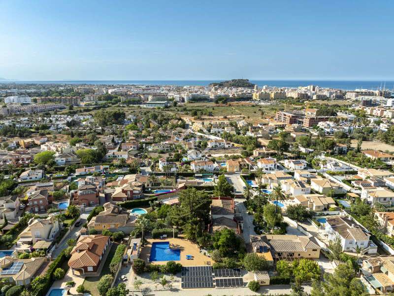 This incredible private property is steeped in history; originally built 100 years ago, and was then extended when famous Spanish singer, Antonio Cortis, enjoyed living in this stunning property. The property has now been lovingly restored by the current owners, and retains its unique charm, whilst offering all modern comforts and eco-friendly features to offer an off-grid living experience, whilst being just a short walk to all amenities, the centre of town and also the beaches in Denia. The property comprises three buildings: The main house, accessed via the impressive entrance hall and comprising three bedroom suites, formal living and dining rooms, conservatory, kitchen and bodega. The summer house which overlooks the pool area, and offers a completely private entertaining space with full kitchen, large dining room, laundry room and a guest toilet. The guest house, which dates back to the 1800s and offers a two fully independent apartments, each with fully-equipped kitchen, living room, bedroom and bathroom. The renovations took over 10 years to complete, and have been done with such care that many of the original fittings and bespoke furnishings have been wonderfully restored. The exterior of the property is equally special, with fruit tree orchard, huge free form swimming pool, mature gardens, and stunning views of the Montgó mountain. Practical aspects to the property include underfloor heating, double-glazed windows, 17kW solar panel farm with batteries, and bore hole 23 m underground with water pump station, ensuring the property is self-sufficient, natural stone 50 cm stone walls, high ceilings, separate machine rooms, double car port, electric entrance gates. An incredible opportunity to purchase a self-sufficient, private estate, with bags of character and steeped in history, yet just a few km from the centre of Denia with all amenities, top restaurants and beaches.