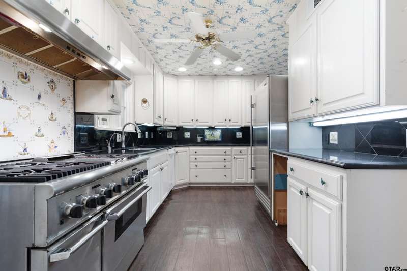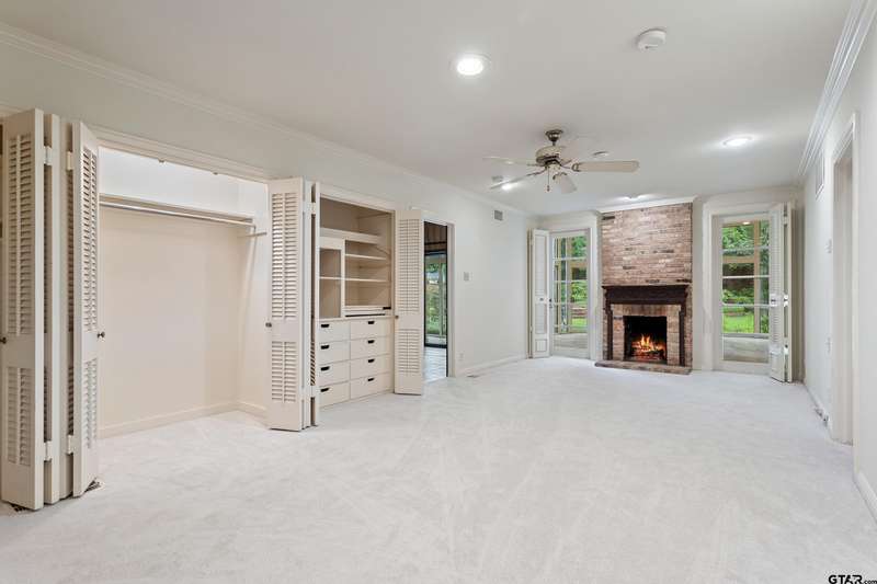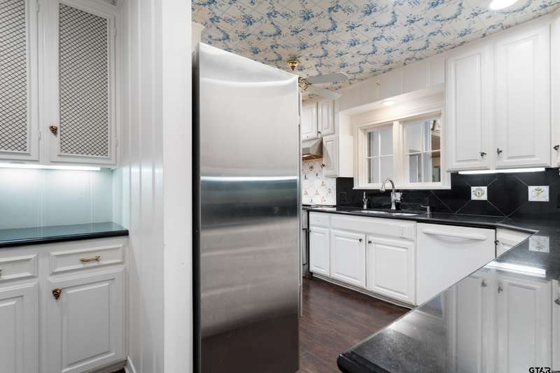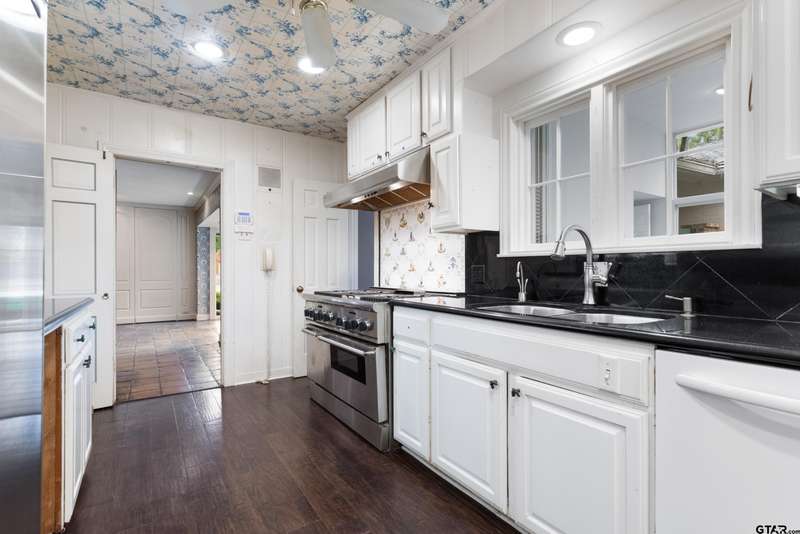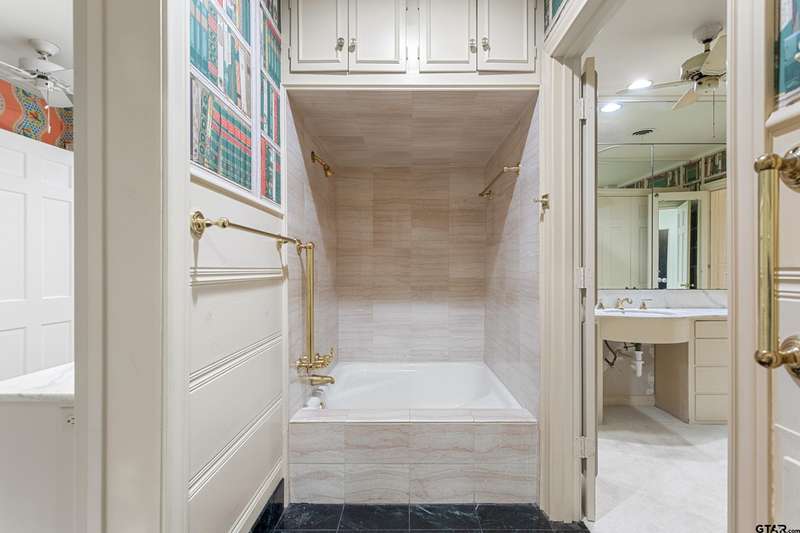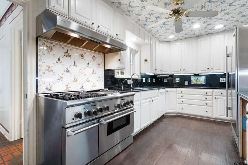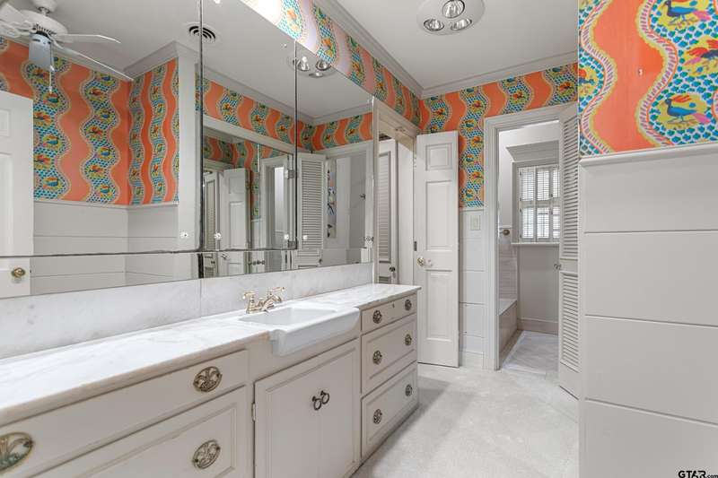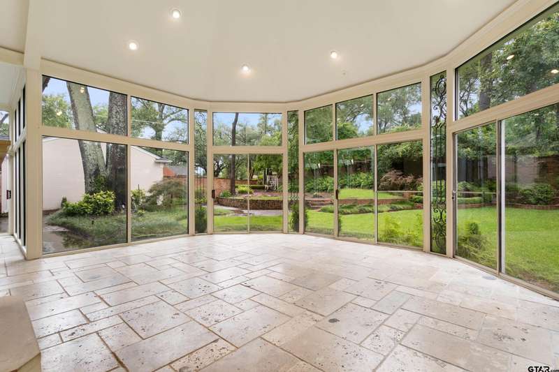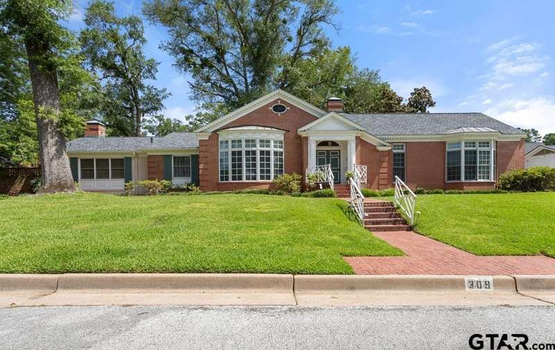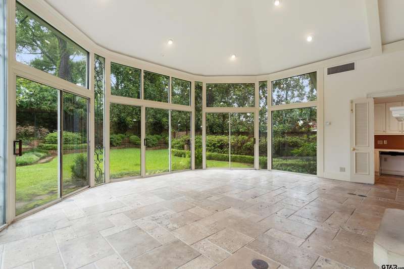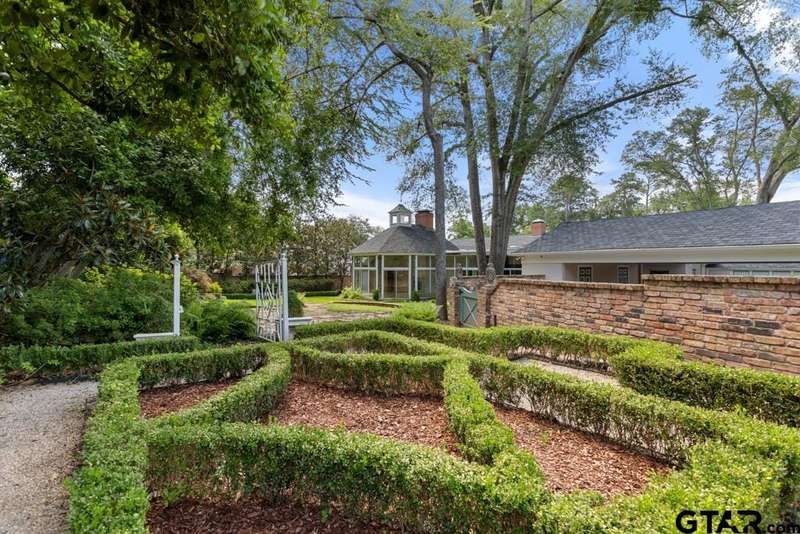 Nestled on a quiet cul-de-sac off of prestigious Old Bullard Road, this beautifully appointed 3-bedroom, 3-bath, 3,919 sq ft historic home (built in 1955) offers exceptional craftsmanship and timeless charm. The gracious entry welcomes you with iconic, Gracie scenic wallpaper and marble flooring. The living or dining room features a custom formal fireplace surround and two enormous storage closets. A true conservatory, designed by Tyler architect, Shirley Simons, with travertine marble floors and a wood-burning fireplace offers serene views of the formal gardens'listed in the Archive of American Gardens at the Smithsonian Institution. Enjoy fine, custom moldings, generous living areas, 6 stunning fireplaces, and Sherle Wagner bathroom fixtures that elevate each bathroom. The primary suite features a luxurious marble-clad bath, steam shower and a sitting room with potential to convert into an additional bedroom. Entertain with ease in multiple living areas, formal living and dining room, and a wet bar. The oversized butler's pantry includes a second oven, dedicated silver closet, and abundant storage. Abundant closet spaces, cedar closet, and new carpet throughout add to the comfort and function. The kitchen features a Sub-Zero refrigerator and Viking range. The home has two dedicated office spaces for productivity. Large windows line the back of the home, flooding interiors with natural light. This is a rare opportunity to own a piece of living history with unmatched elegance and an unbeatable location.