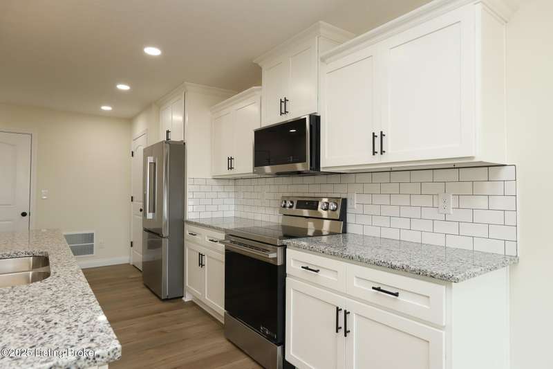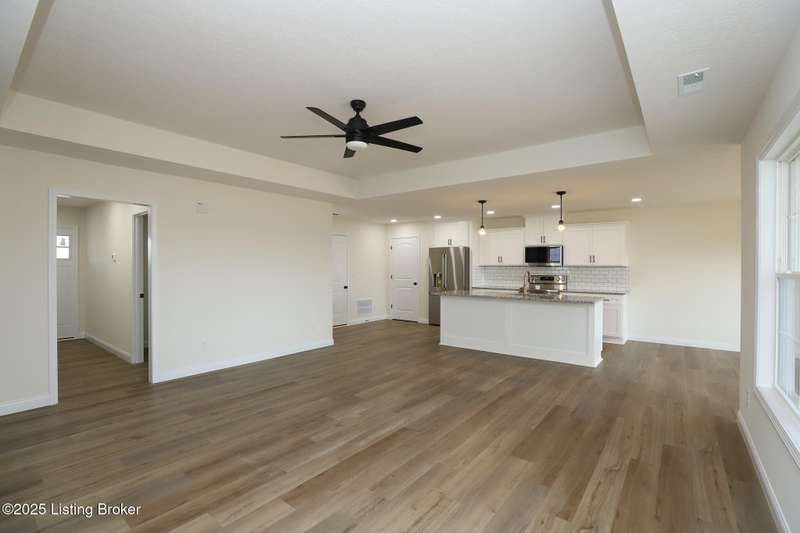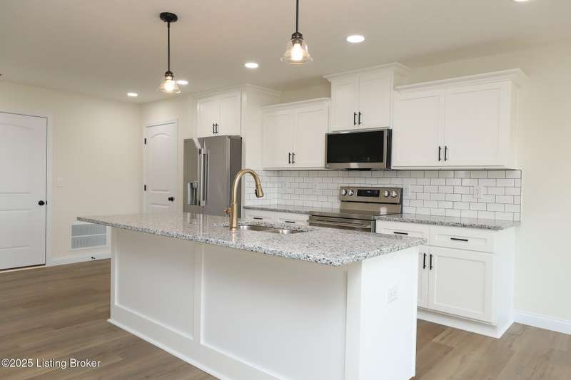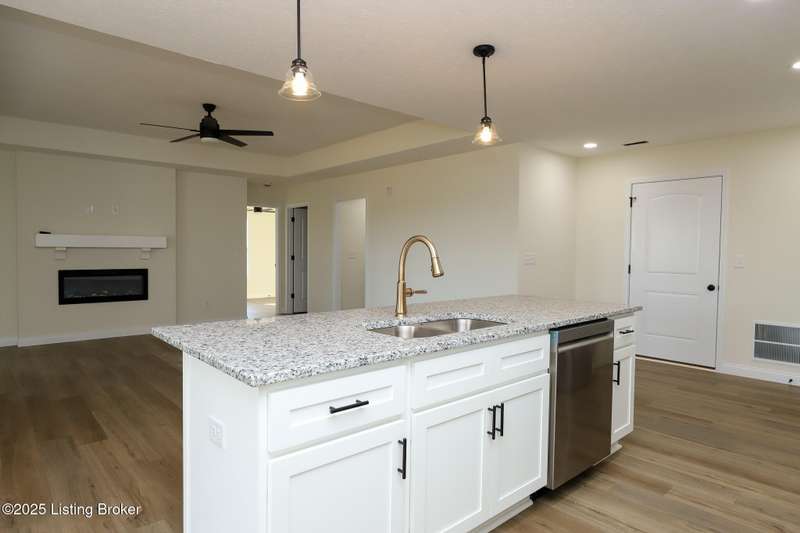 **Stunning Contemporary Home with an Open Concept Design** New construction! This beautifully crafted home offers an inviting open concept, split bedroom floor plan that effortlessly marries style and function. Bathed in natural light from generous windows throughout, every corner of this residence radiates warmth and welcomes you inside. As you enter, you'll be greeted by a spacious foyer leading into the heart of the home — a large great room with a fireplace and a kitchen designed for both culinary delights and entertaining. Featuring granite countertops, contemporary black fixtures, a tile back splash, an island, pantry and a full appliance package. The split bedroom layout ensures privacy for both owners and guests alike. The master suite serves as your personal sanctuary, complete with ample closet space and an en-suite bath that promises relaxation after a long day. Two additional bedrooms are thoughtfully positioned on the opposite side of the home, along with another full bathroom. Accessibility is key in this residence with no steps at the entrances making it ideal for all ages and lifestyles. This well laid out home also features luxury vinyl flooring throughout, a private covered back patio and a 2-car garage. Schedule your viewing today!
