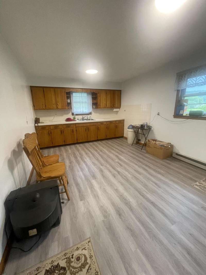 Ready for new owners to fill the rooms! This is a 3 bedroom with 1 bath that has been remodeled with new flooring, vanity and light fixture. In the large kitchen, you will find new flooring put in June 2024, with sellers offering $2,000 for appliances. There is an unfinished basement with garage for storage. This home also sits on 1.5 +/- acres. There is a house seat on the back of the property with a septic tank.