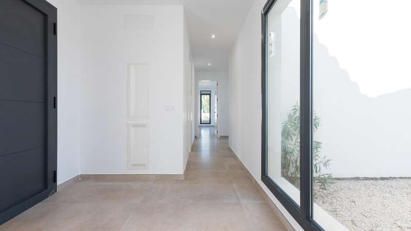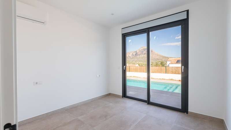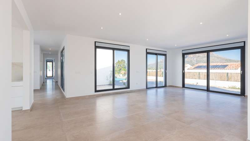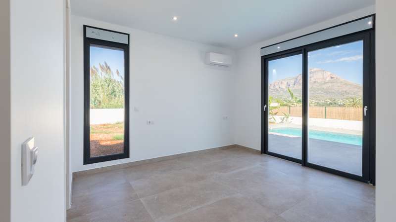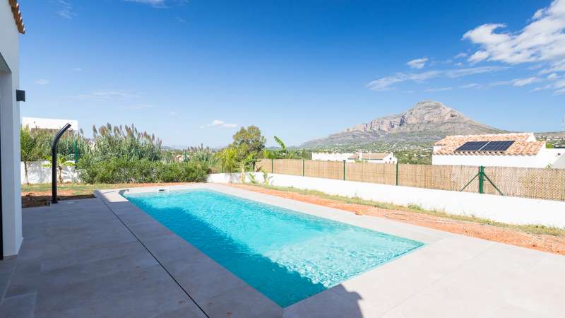Located in the exclusive Piver - Capsades area of Jávea, Alicante, this stunning newly built villa offers the perfect combination of luxury and sustainability. With a constructed area of 196m² and a plot of 1,033m², this single-storey property stands out for its high-quality finishes and modern design. The villa features four spacious bedrooms and four bathrooms, two of which are en suite, providing unparalleled comfort for the whole family. The villa is designed as a passive house, ensuring exceptional energy efficiency. Sustainable features include solar panels and underfloor heating throughout the property. In addition, the villa is equipped with air conditioning and double glazing, ensuring a comfortable environment all year round. The reinforced security door adds an extra level of safety to this magnificent property. The exterior of the villa is equally impressive, with a private swimming pool and garden inviting you to enjoy the Mediterranean climate. The large 169m² terrace, which includes both covered and uncovered areas, offers spectacular views of Montgó and is the perfect place to relax or entertain guests. The proximity to the golf course and the town centre adds further value, making this villa an ideal choice for those seeking a luxurious lifestyle in a prime location. This villa under construction is a unique opportunity to acquire a dream property in one of the most sought-after areas of Jávea. With its single-storey design and high-quality features, this villa offers an exclusive and sustainable lifestyle in an incomparable natural setting.