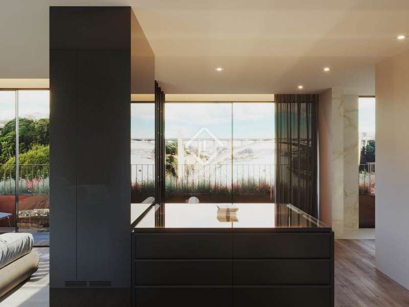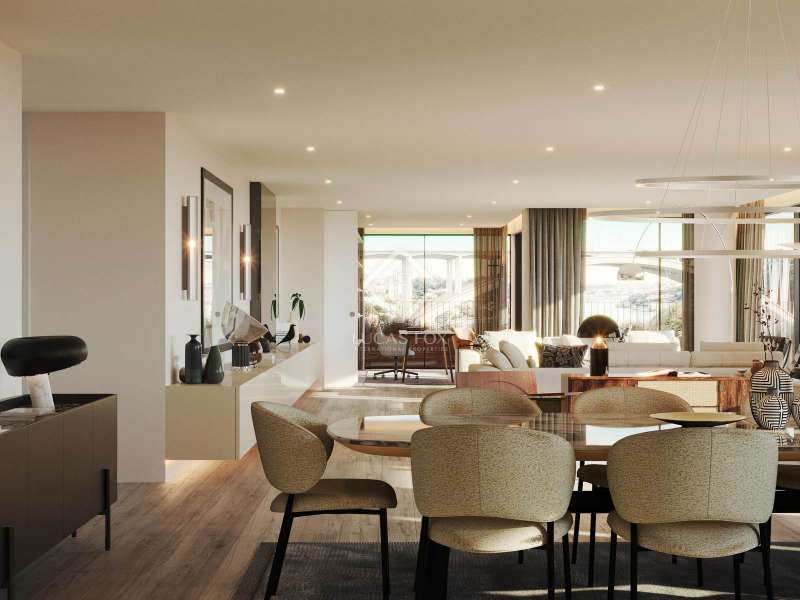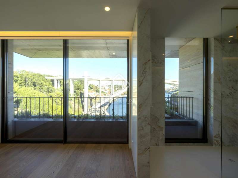 This exclusive housing unit stands out for its views, intense light and the large, optimized size of the spaces, with no “lost areas”. The apartment is divided into a social area with a front facing the river, extending for 28 metres, allowing the anteroom, dining room, living room, living room/office and kitchen areas to provide their users with an indescribable view. The kitchen, with approximately 5 meters of river frontage and 33 m2 of area, has two huge glass doors to the living rooms, further increasing the spaciousness of this area of the house. The apartment offers an excellent laundry area, with an integrated WC. The fabulous master suite features a 19-door wardrobe and offers a wonderful view. The remaining two suites are equally exceptional. The apartment has several balconies and terraces throughout its surroundings. - Underfloor heating and VMC. - Four parking spaces and two storage rooms. Located in the heart of the city of Porto, on the riverfront next to the Arrábida bridge, the Panorama apartments are equally distant from Foz, the historic centre and Boavista. They allow you to make the most of the city, while enjoying a unique panoramic view over the Douro River. Panorama is the promise of a simpler life, the opportunity to choose and have time to fully enjoy Porto. With facades full of vegetation, the architectural project integrates perfectly with the surrounding space, appearing as an extension of the hillside on which it is located. The large balconies suspended over magnificent landscapes overlooking the mouth of the river and the sea invite you to get in touch with nature, so that you can enjoy the natural light in every room. For the most demanding and those who do not give up a lifestyle with the pleasure of choice, living in Porto is the certainty of a vast range of leisure and sporting activities.