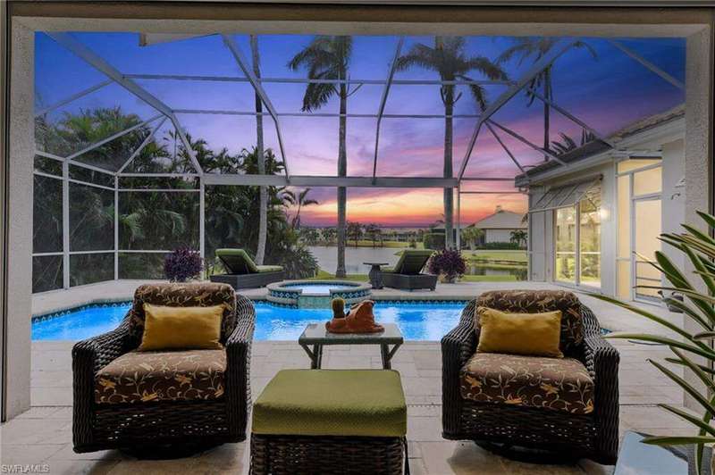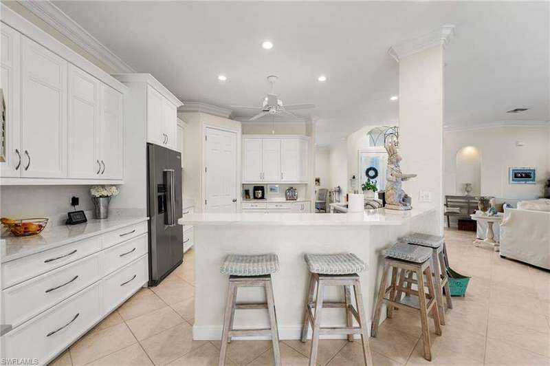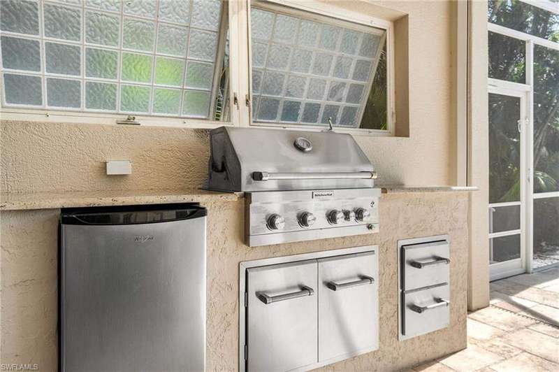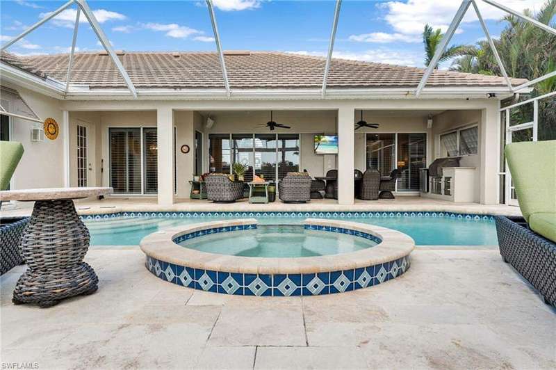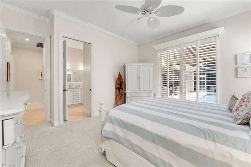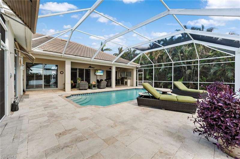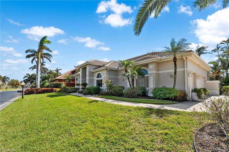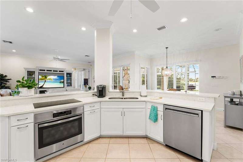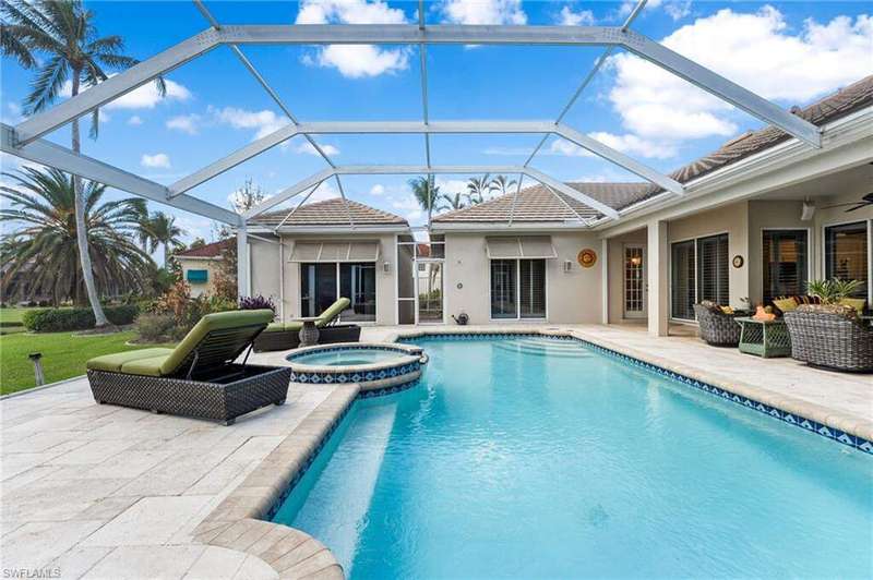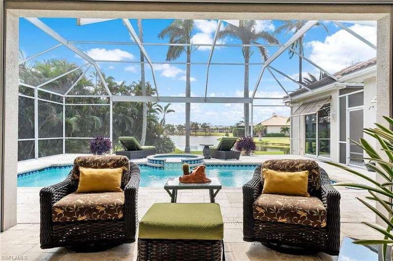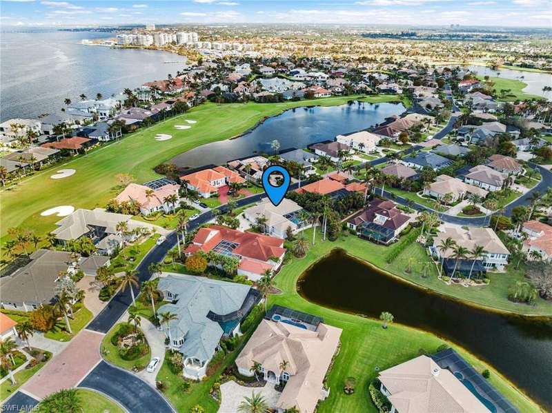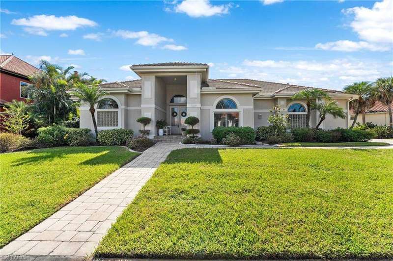 Nestled within the prestigious gates of Gulf Harbour's Edgewater community, this stunning 4-bedroom, 4-bath custom home offers over 3,200 sq. ft. of refined living on an oversized lot with unmatched privacy and panoramic lake views. Walls of glass welcome you with breathtaking vistas the moment you enter. Meticulously maintained, the residence boasts a brand-new roof, hurricane screens on the lanai, and an assumable flood policy at just $845 annually. A custom-designed oversized 3-car garage provides ample space for 3 cars, a golf cart, tools, and storage-with dimensions tailored to even fit a limousine. The open-concept split floorplan is light-filled and ideal for entertaining. A chef's kitchen features 42" custom cabinetry, quartz countertops, stainless steel appliances, a walk-in pantry, and a new refrigerator (microwave 2 years old, dishwasher 4 years old). Flowing seamlessly into the main living areas, the kitchen opens to an expansive covered lanai with an outdoor kitchen and fridge, creating the perfect backdrop for year-round gatherings by the pool. With coveted southern exposure, the pool enjoys full sun all day. Each bedroom in the main house is an ensuite, highlighted by a luxurious primary suite with two walk-in closets, dual vanities, a soaking tub, and a walk-in shower. A private Detached casita with a full bath offers the ideal retreat for guests, in-laws, or a home office. Additional upgrades include a 3-year-old A/C in the main house and a separate newer A/C for the casita. Limited-Time Membership Savings - Sports Membership Fee Reduced by $32,000! For a limited time, secure a sports membership at Gulf Harbour Yacht & Country Club for only $20,000. Don't miss this opportunity to own one of the premier homes in Edgewater!