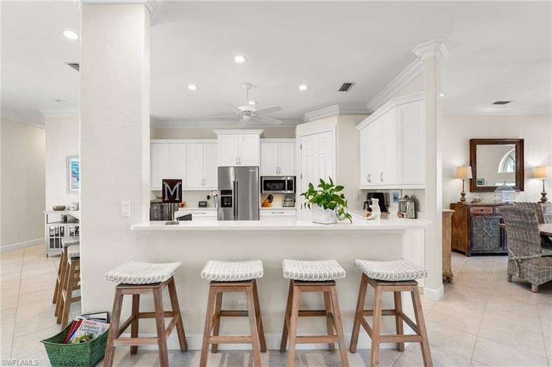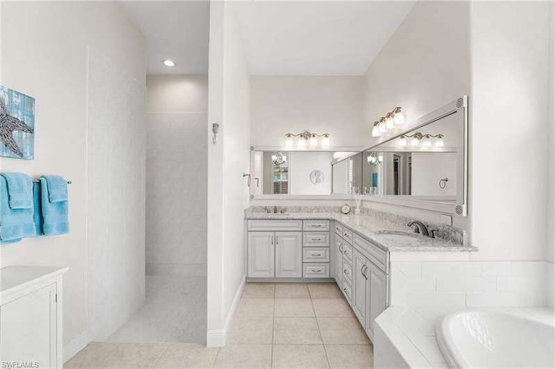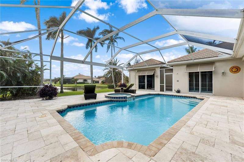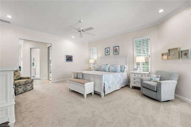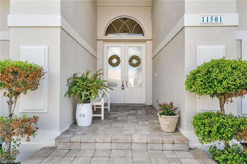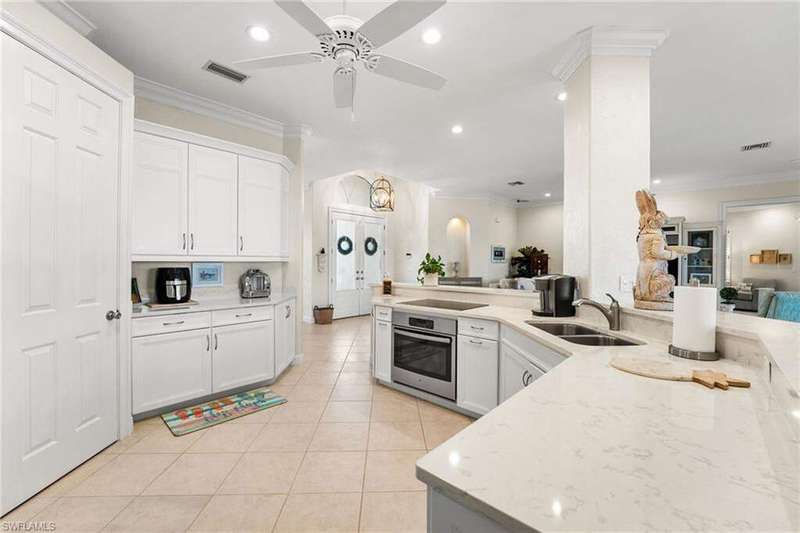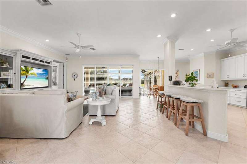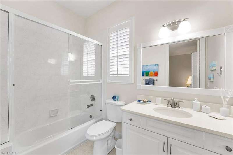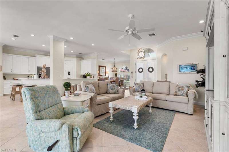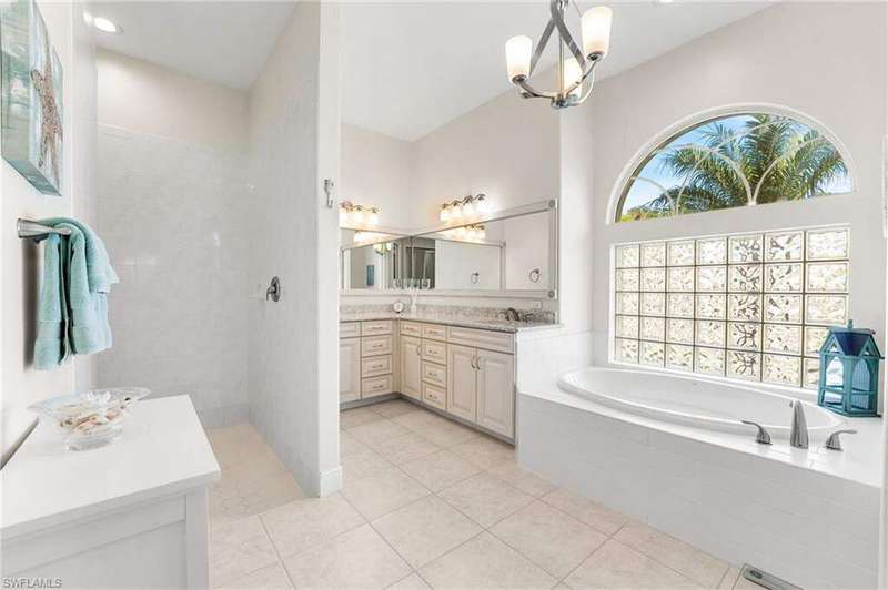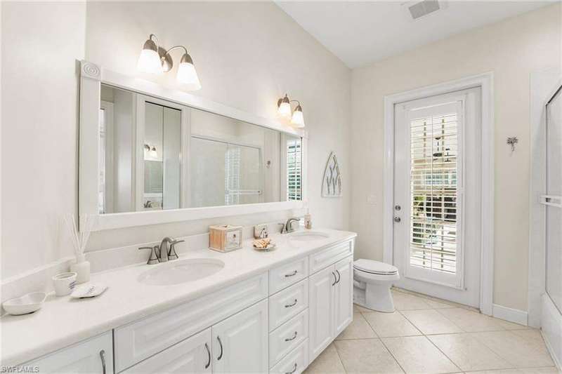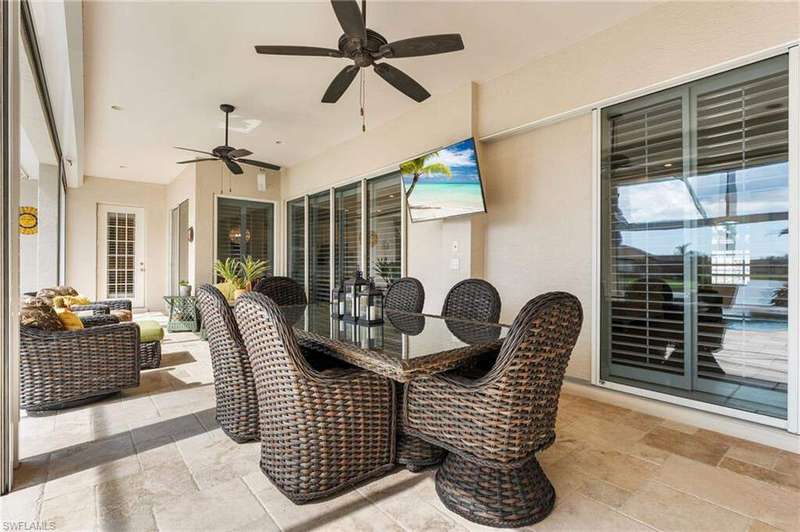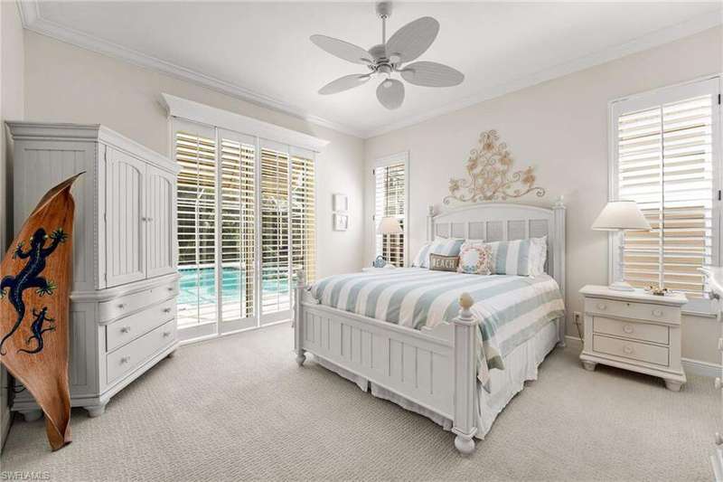 Nestled within the prestigious gates of Gulf Harbour's Edgewater community, this stunning 4-bedroom, 4-bath custom home offers over 3,200 sq. ft. of refined living on an oversized lot with unmatched privacy and panoramic lake views. Walls of glass welcome you with breathtaking vistas the moment you enter. Meticulously maintained, the residence boasts a brand-new roof, hurricane screens on the lanai, and an assumable flood policy at just $845 annually. A custom-designed oversized 3-car garage provides ample space for 3 cars, a golf cart, tools, and storage-with dimensions tailored to even fit a limousine. The open-concept split floorplan is light-filled and ideal for entertaining. A chef's kitchen features 42" custom cabinetry, quartz countertops, stainless steel appliances, a walk-in pantry, and a new refrigerator (microwave 2 years old, dishwasher 4 years old). Flowing seamlessly into the main living areas, the kitchen opens to an expansive covered lanai with an outdoor kitchen and fridge, creating the perfect backdrop for year-round gatherings by the pool. With coveted southern exposure, the pool enjoys full sun all day. Each bedroom in the main house is an ensuite, highlighted by a luxurious primary suite with two walk-in closets, dual vanities, a soaking tub, and a walk-in shower. A private Detached casita with a full bath offers the ideal retreat for guests, in-laws, or a home office. Additional upgrades include a 3-year-old A/C in the main house and a separate newer A/C for the casita. Limited-Time Membership Savings - Sports Membership Fee Reduced by $32,000! For a limited time, secure a sports membership at Gulf Harbour Yacht & Country Club for only $20,000. Don't miss this opportunity to own one of the premier homes in Edgewater!