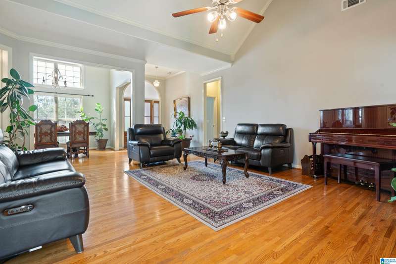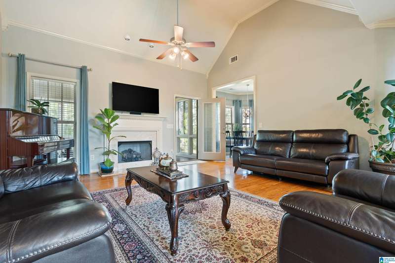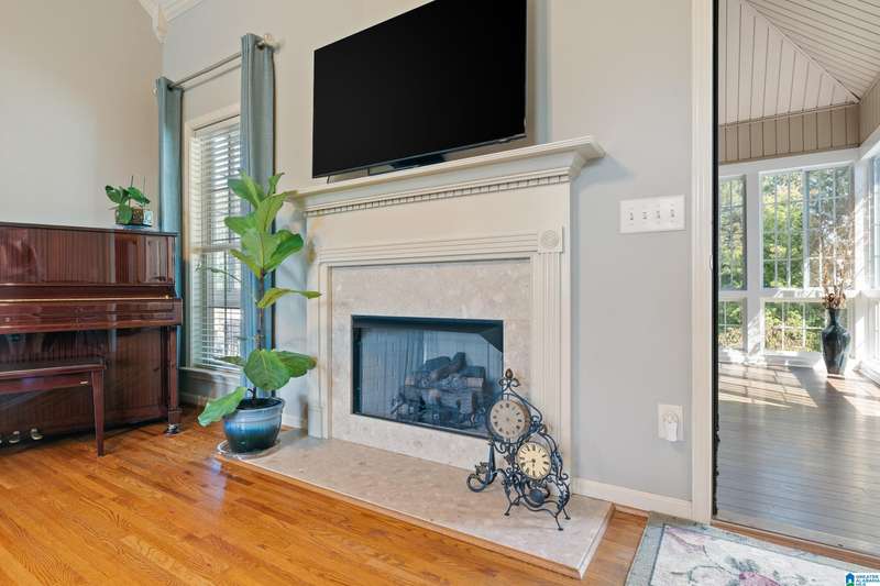 Built with 4sided brick &poured concrete basement, this home was fortified for low maintenance. The perfect investment in a rapidly growing community before development is complete! Tucked away on just over an acre, you’ll find 5 bedrooms, 3 baths, plus a versatile bonus room that can serve as a 5th bedroom. The main level features hardwood floors with a sweeping vaulted ceiling, crown molding, & cozy gas fireplace. The split-bedroom design provides privacy with the master suite separate from guests. Bright and airy, it's a plant enthusiast's dream! A newly finished all-season sunroom creates the ideal spot to peacefully sip your morning coffee. The finished daylight basement adds even more living space; complete with a living room, bedroom, bonus room, &fullbath. Garage has plenty of storage and space for tinkering, plus a storm shelter. Outdoors, the backyard is adorned w weeping pear trees, while a wood-burning fireplace is the perfect retreat to unpack the day