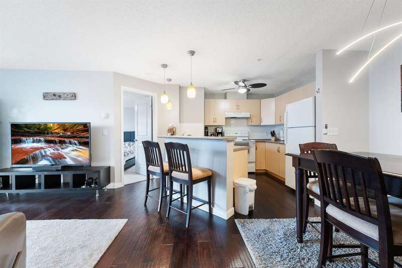 Welcome to this beautful, low-rise condo perfectly situated in the heart of downtown Cochrane. Offering 2 spacious bedrooms and 2 full bathrooms, this home combines comfort, convenience, and an unbeatable location. Step inside to an open and inviting layout filled with natural light. Large windows frame a beautiful view, creating a peaceful backdrop for everyday living. Enjoy the convenience of being just steps from shopping, restaurants, walking paths, and local amenities, while still having a quiet, comfortable place to come home to. The building itself is clean, secure, and well cared for, reflecting pride of ownership throughout. Whether you're a first-time buyer, downsizing, or looking for an investment, this condo offers incredible value in a sought-after location. Don’t miss your chance to make this wonderful home yours!
