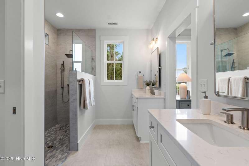 Stunning New Coastal Golf Course Home less than 4 miles from Holden Beach Island. Experience luxury coastal living with this newly constructed custom home, built with the superior craftsmanship of Brandon Construction. Perfectly positioned to capture breathtaking golf course views, this residence combines timeless design with modern features and an amenity-rich lifestyle. Inside, the open floor plan showcases soaring ceilings, engineered hardwood floors, and abundant natural light. The inviting living room features a 32'' gas fireplace with tile surround, flowing seamlessly into the dining area accented with custom wainscoting. The kitchen is a chef's dream, complete with Calacatta Classic quartz countertops, a large island with seating, a gas range, and a spacious walk-in pantry. All-wood cabinets with soft-close doors and drawers add elegance and function. The primary suite offers incredible golf course views, an oversized walk-in closet, and a spa-inspired bath with individual vanities and a large walk-in shower. Two guest bedrooms share a full bath on the opposite side of the home, along with a flexible office or craft room. Upstairs, a versatile bonus room includes deep closet space and floored walk-in storage with easy access to mechanical systems. Outdoor living is at its best with an expansive back deck overlooking the golf course, tongue-and-groove porch ceilings, and meticulous exterior details including James Hardie fiber cement siding, 30-year architectural shingles, and 24-gauge standing seam metal roof accents. The oversized garage features epoxy flooring and an additional deep storage closet. Energy-efficient upgrades include a Carrier HVAC. Full irrigation system! This spectacular community greets you with live oak-lined streets and an abundance of amenities: an award-winning golf course, clubhouse with restaurant and banquet room overlooking the Lockwood Folly River & Intracoastal Waterway, a resort-style pool, fitness center, pickleball, tennis, basketball, bocce ball, cornhole, library, and game room. Outdoor enthusiasts will love the boat ramp, fishing pier, and dedicated storage for boats, RVs, and jet skis. Conveniently located near Oak Island, Ocean Isle Beach, and Sunset Beach, with easy access to shopping, dining, and fresh-off-the-boat seafood. Only 35 miles to North Myrtle Beach, SC, and 45 miles to Wilmington, NC. This home offers the perfect blend of quality construction, incredible golf course views, and an unmatched lifestyle. Schedule your private showing today!