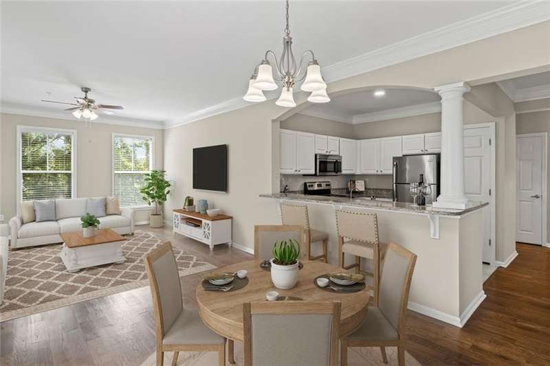 Rare 3-Bedroom Corner Unit in Prime Location at the Madison Square at Dunwoody Condominiums!New carpet! New paint! New windows! 2 parking spaces.Opportunities like this dont come along often this freshly updated corner unit offers generous space with the convenience of gated condo living.Step inside to find brand-new carpet in the bedrooms, a fresh coat of paint throughout, and new windows that flood the home with natural sunlight. The foyer welcomes you with custom built-ins and crown molding, leading into a stylish kitchen with granite countertops, stainless steel appliances, breakfast bar, and room for a dining table. The sun-drenched living room is a showstopper, with four oversized windows spanning two walls a rare feature reserved for corner units. The spacious primary suite easily accommodates a king-sized bed and features a spa-style bath with soaking tub, dual vanities, and two walk-in closets. Two generously sized secondary bedrooms share another dual-vanity bath with soaking tub perfect for family, guests, or a home office setup.Additional highlights include a young HVAC & water heater, whole-home water filtration system with independent hot & cold dispensers, two assigned parking spaces, and a generous storage closet.The gated community offers resort-style amenities, including a zen garden, two pools (lap + beach-entry), a fully equipped gym, clubhouse, sculpture garden, grilling areas, and secure parking garages. All this in an unbeatable Dunwoody location steps to shopping, restaurants, Kroger supermarket, and immediate access to the I-285 interstate, convenient to GA-400 & I-85 for easy commuting.