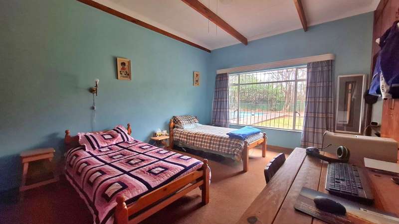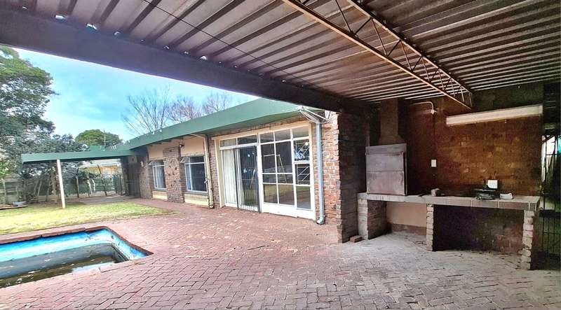 EXCLUSIVE MANDATE This well-designed family home offers generous living spaces and a layout perfect for both comfort and entertaining. The spacious living area opens directly onto a beautifully maintained garden and sparkling swimming pool — ideal for relaxed outdoor living. The modern kitchen features a gas hob and laundry. A dedicated dining area, and ample storage space for appliances such as fridges and freezers. A separate study provides the perfect work-from-home space or can easily be converted into a fourth bedroom, depending on your needs. All three north-facing bedrooms are fitted with built-in cupboards, ensuring plenty of storage. The main bedroom boasts an en-suite full bathroom and a sliding door that opens to the garden. The remaining bedrooms share a family bathroom with a separate toilet for added convenience. Outdoor living is a highlight, with a covered entertainment area featuring a built-in braai, perfectly positioned to overlook the pool — great for hosting family and friends. Additional features include: • Double garage with direct access to the home • Security gates and burglar bars throughout • Borehole water supply • Prepaid electricity • Fully fenced property for added privacy and peace of mind • Staff Quarters This home combines space, practicality, and lifestyle in one inviting package. Don’t miss out!
