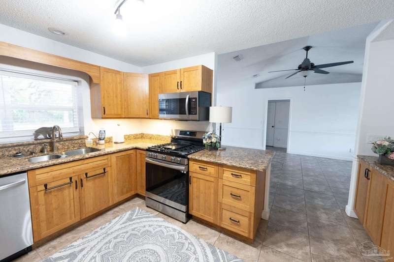 ***Assumable VA loan at a low rate*** Located in the desirable Gulf Breeze area, this updated 3-bedroom, 2-bathroom home offers the perfect blend of modern comfort and coastal convenience. Recent upgrades in 2024 include a brand-new roof, a new HVAC system with a UV light treatment for improved air quality, and a freshly painted inside and pressure-washed and painted exterior. Enjoy endless relaxation in the private backyard featuring a sparkling gunite pool with a brand-new pump system. The property is ideal for boat or jet ski owners, with a double gate leading to a side yard parking area and a convenient two-car drive-thru garage. Situated just minutes from Tiger Point, this home offers easy access to golf, parks, and waterfront activities, as well as a short drive to beautiful Gulf Coast beaches and nearby boat docks. Don't miss out on this well-maintained home in a prime location!