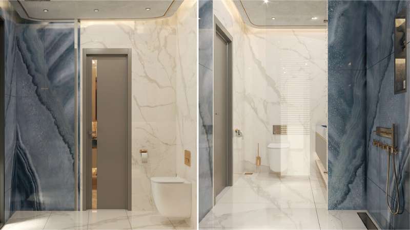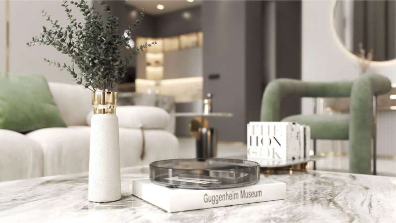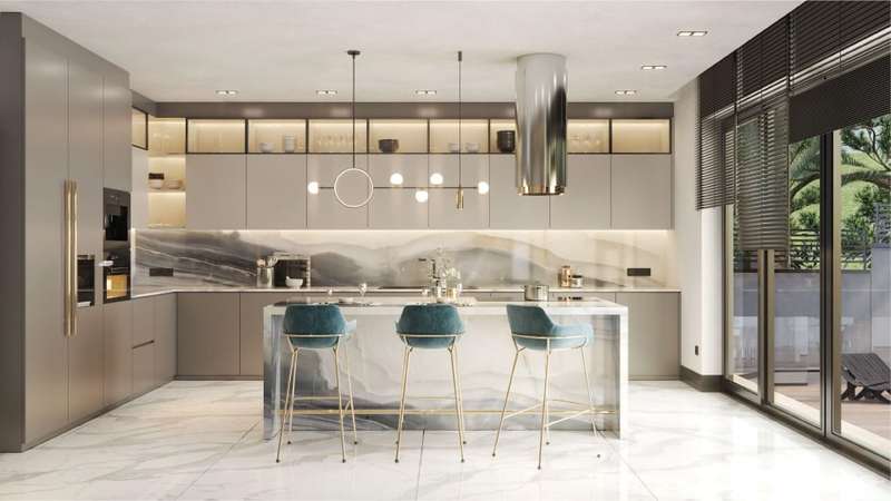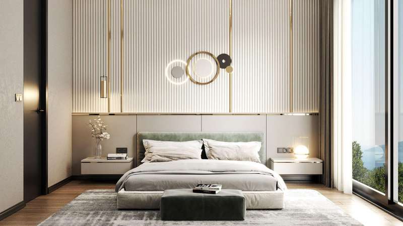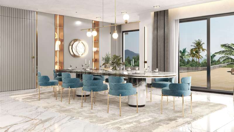 Five-bedroom detached houses have a living and dining room, kitchen, dressing room, guest room, servant’s room, driver’s room, six bathrooms, guest restroom, laundry room, storage, two balconies, terrace, and additional fitness and sauna depending on the house type.