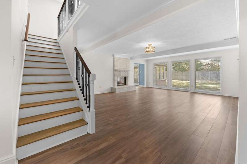 Beautifully updated 5BR, 3.5BA home featuring a light-filled 16x12 sunroom and a warm, double-sided fireplace that anchors the main living spaces. Recent improvements include a renovated staircase and bathroom (2024), a brand-new roof with leaf guards (2025), new carpet upstairs, fresh interior paint, and new quartz kitchen countertops. The primary suite shines with new flooring and a refreshed vanity, creating a spa-like feel.