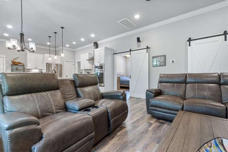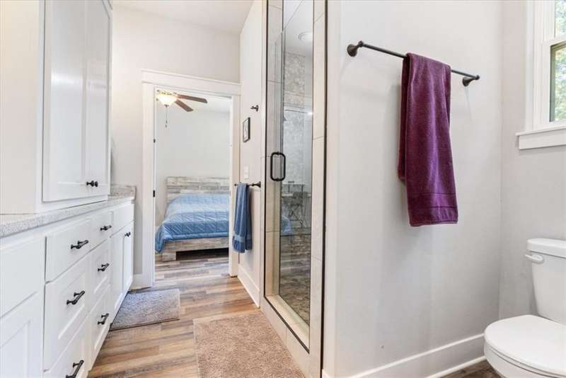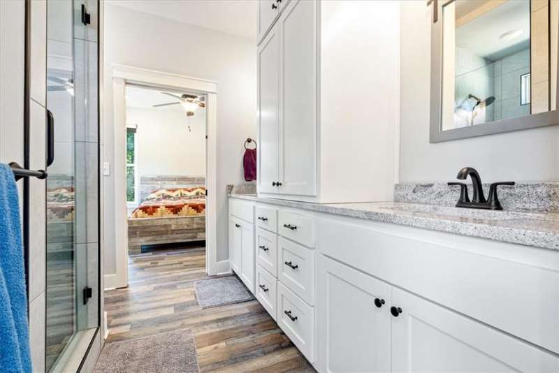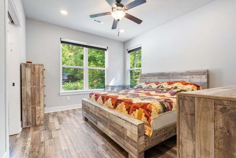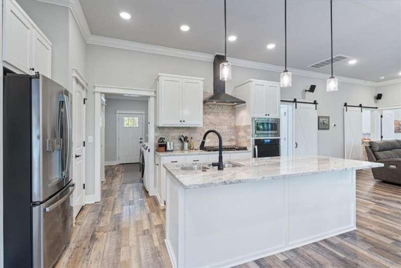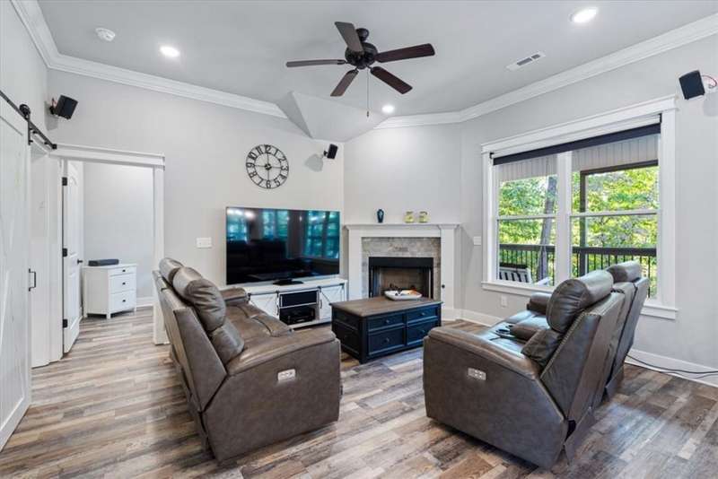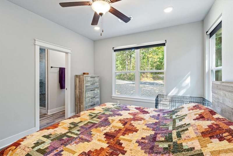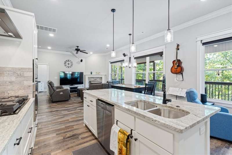 The privacy of owning an entire CULDESAC! Imagine the tranquility of enjoying evenings relaxing on the swing on your 56 foot covered deck overlooking a wooded paradise! Built in 2023, this is a custom designed two bedroom plus office floor plan. Inside, you will find a light and bright living space, with a wall of windows with a view that allows you to feel like you are living in a tree house. Open concept living/dining/kitchen, with a large island, gas cooktop, granite counters and an abundance of cabinet space plus a pantry. Oversize garage with space for a workshop and it will accommodate a full size truck! 50/30 amp RV hookup. Walk out lower level for storage. Even a covered, fenced pet yard! Close to the Branchwood Recreation Center for fitness, an indoor pool and pickleball and the Stoneykirk ramp for Loch Lomond lake! Also available with 4.04 acres with adjacent lot to right of home at $429,900.