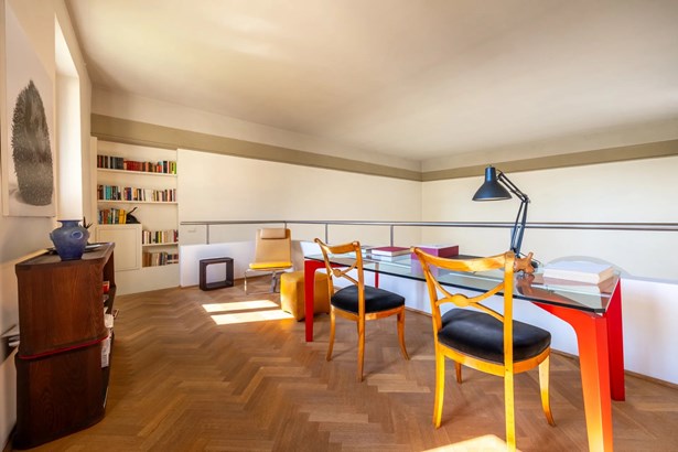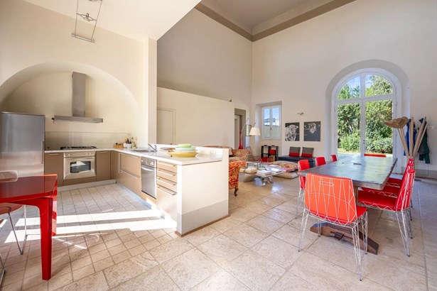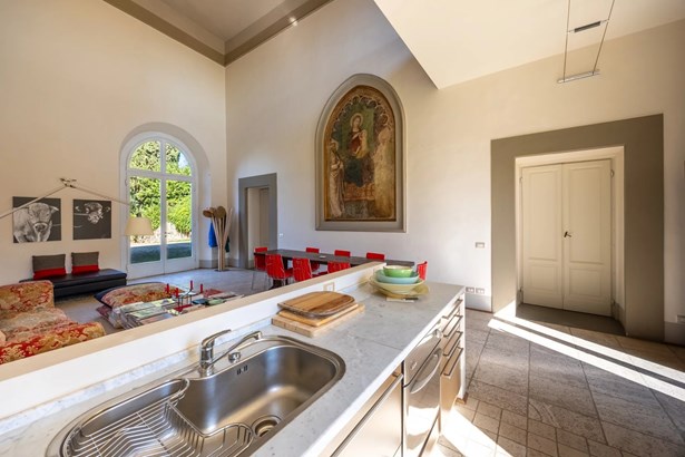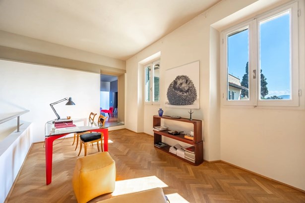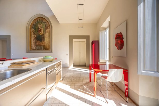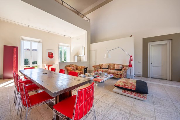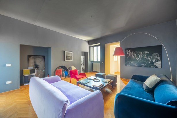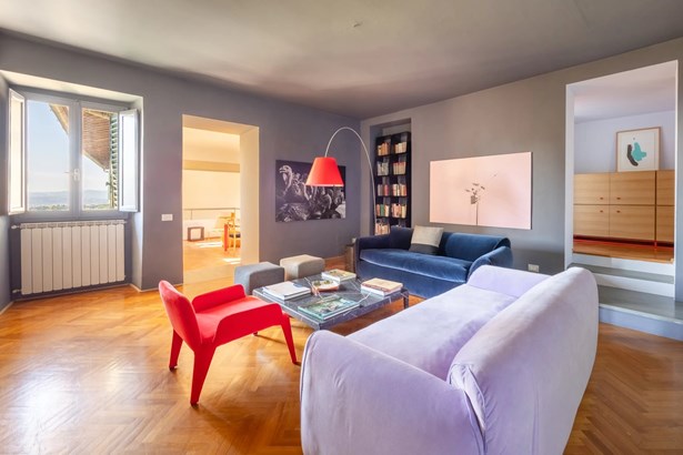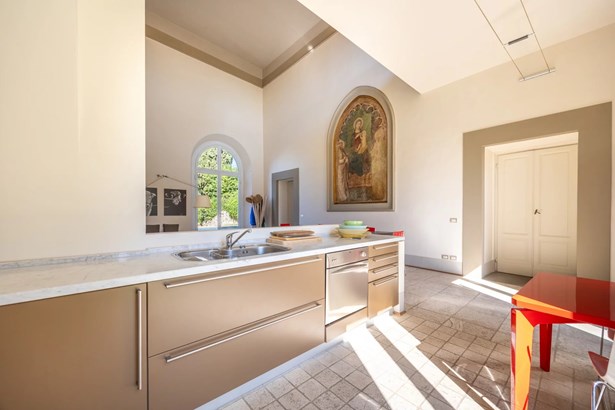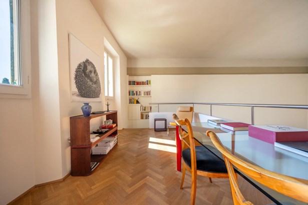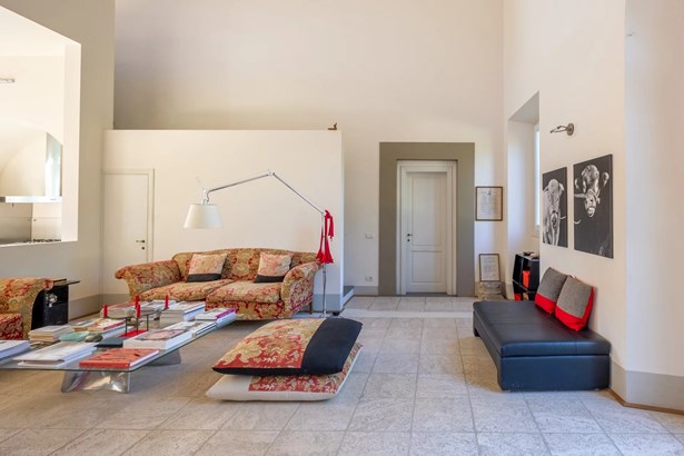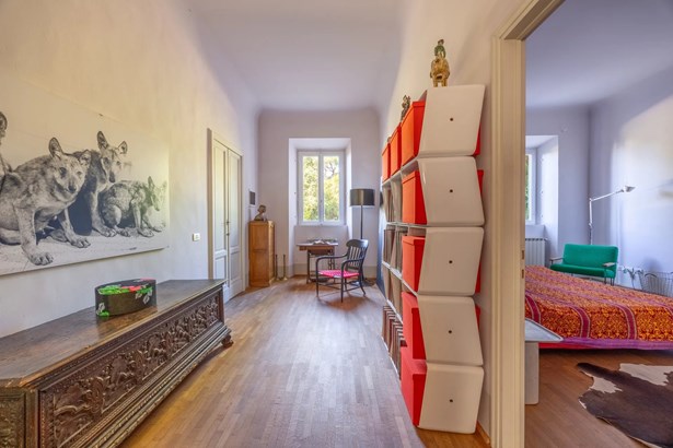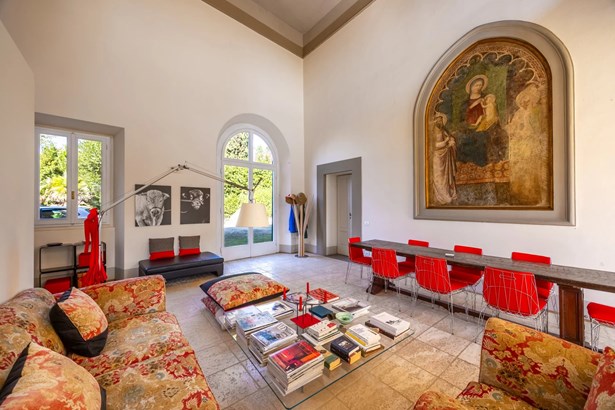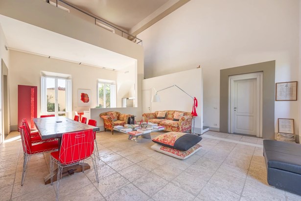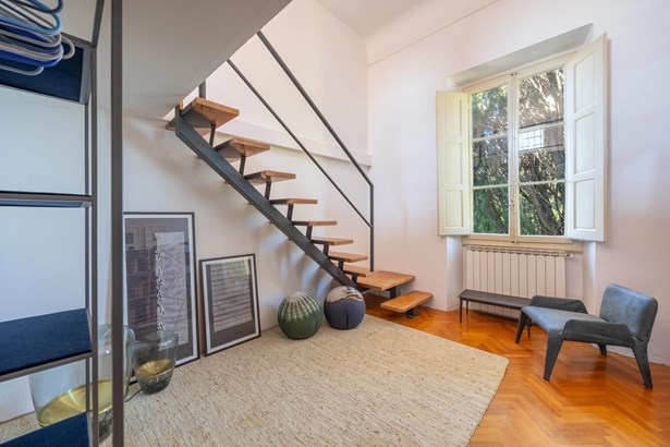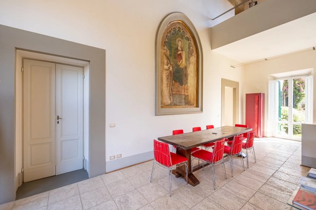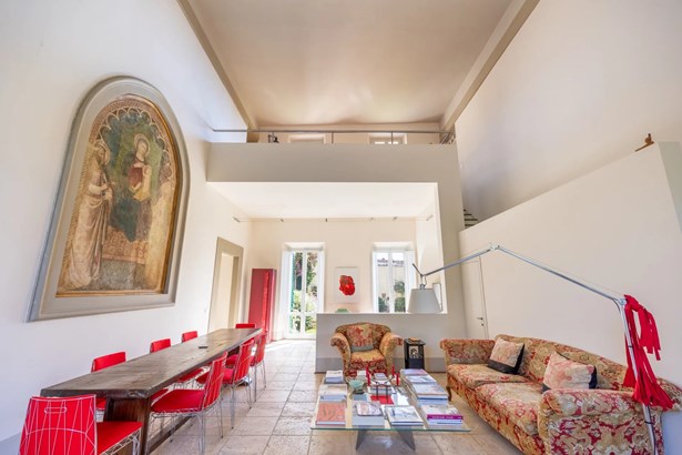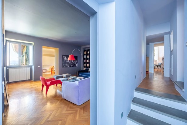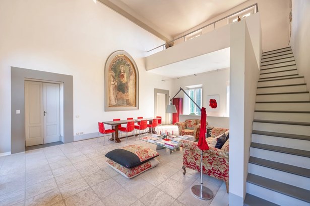 Florence – Via Bolognese, La LastraIn one of the most prestigious and sought-after areas of Florence, just outside the city yet surrounded by greenery, we are pleased to present for sale a splendid portion of a historic villa, truly unique in its kind. The property is set within an elegant context featuring a large communal park, enriched by a private chapel, parking areas, and service annexes, all of which enhance the charm and prestige of the entire complex.The result of a meticulous renovation, the residence perfectly combines the allure of historic architecture with the comfort and functionality of modern living spaces.The entrance opens onto a magnificent, light-filled double-height living room, which hosts a scenographic lounge area and dining room. Adjoining this space, the kitchen has direct access to the garden, shared with another property yet easily accessible. On the same level there are two bedrooms, two bathrooms, a hallway/study, and a practical storage room.A refined staircase leads to the upper floor, where a striking mezzanine introduces a more private sitting area. Also on this level are two beautiful bedrooms, each featuring a wardrobe mezzanine, an additional bathroom, and a laundry room.The finishes are of the highest quality: travertine, parquet, pietra serena, and resin enrich the interiors with elegance and refinement.This property is the ideal solution for those who wish to enjoy complete tranquility just minutes from Florence’s historic center, or for anyone seeking a prestigious residence with a truly unique and exclusive character.