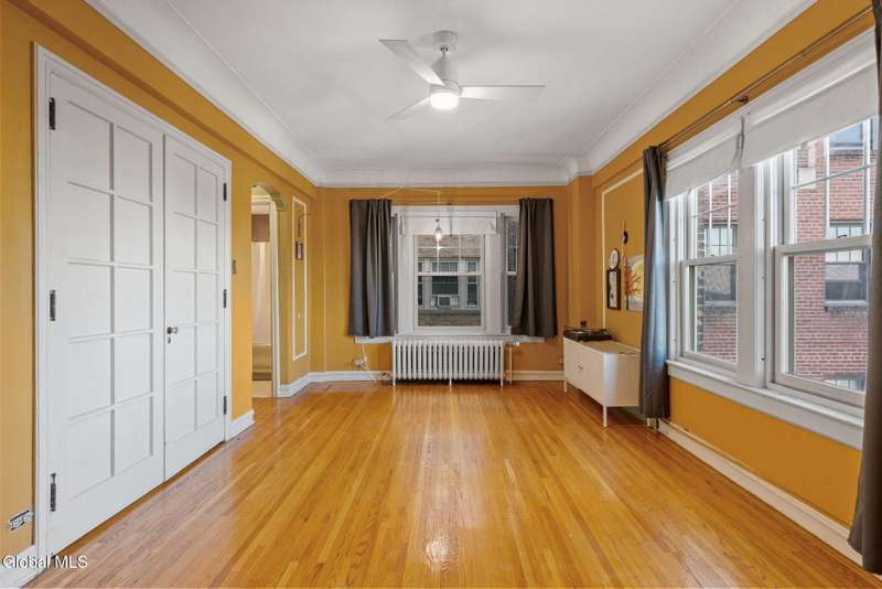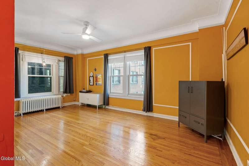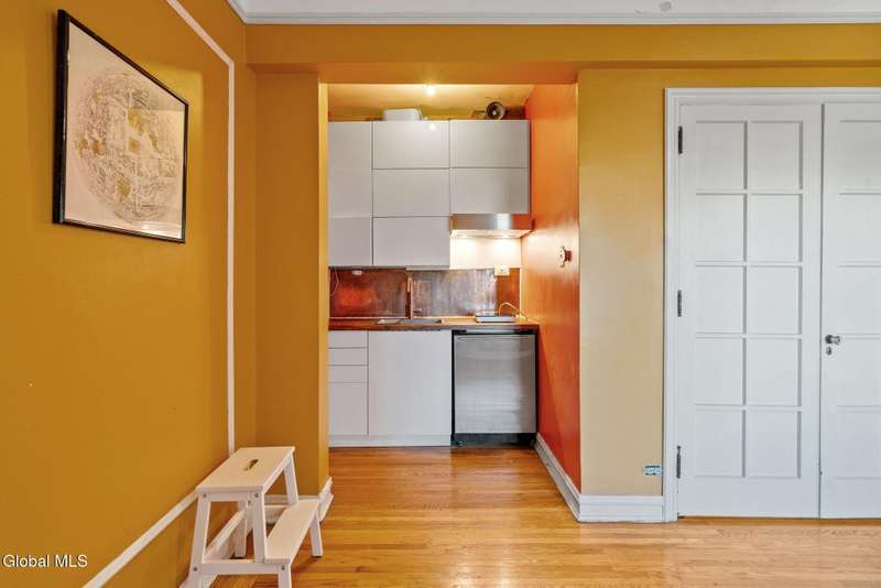 Situated in the heart of Albany with beautiful views of Washington Park, this studio condo combines character and convenience. From the condo windows, enjoy a stunning view of Albany, bringing the city's charm right to your home. Inside, you'll find a spacious layout with a large closet offering plenty of storage potential. The kitchen was updated in 2019 with sleek IKEA cabinets, modern countertops, and a striking copper backsplash. Additional highlights include newer windows and newly refurbished elevators for added ease. Set in a charming building where the atmosphere of the lobby takes you back in time, residents also enjoy modern conveniences such as bicycle storage and an on-site laundry room. Perfectly located just minutes from downtown Albany, you'll be close to hospitals, schools, restaurants, shopping, and more! Don't miss the opportunity to own this well-maintained condo in one of Albany's most desirable locations.