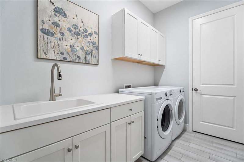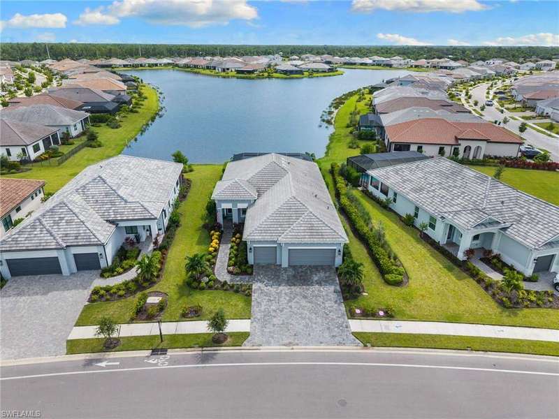 Step into this expansive and beautifully upgraded ranch home offering 3 spacious bedrooms, 2 full bathrooms, a private den, and a 3-car garage. Perfectly designed for both everyday living and entertaining, this light-filled residence blends modern elegance with comfortable style, all while enjoying breathtaking water views-one lake in back and another just across the street. Inside, you'll find a thoughtfully designed open layout accented by plank tile flooring, tray ceilings, plantation shutters, custom fans, and recessed lighting throughout. The chef's kitchen is a true showpiece, featuring quartz countertops, stainless steel appliances, gas cooking, oversized pendant lighting, a polished tile backsplash, wine cooler, walk-in pantry, and a butler's pantry for added storage and prep space. French doors lead to a versatile den-ideal for a home office, hobby room, or additional guest space. The primary suite offers a luxurious retreat with dual sinks, a spacious walk-in shower, and two generous walk-in closets. Two additional bedrooms provide comfort for family and guests alike. Outdoor living is just as impressive. The lanai featuring a picture screen cage and sparkling pool with sun shelf and fountain create a private backyard oasis, complete with gas hookup, electric and plumbing, ready for your dream outdoor kitchen. A covered front porch adds charm and invites you to relax and enjoy the tranquil surroundings. Beyond the home, the amenity-rich community offers something for everyone. Explore scenic biking and jogging trails, unwind at the sprawling clubhouse and lakehouse, or stay active at the fitness center, tennis courts, pickleball, basketball, and lap pool. For more leisurely days, enjoy the resort-style pool, outdoor fire pit, fishing pier, play area, dog park, or the game room with catering kitchen for gatherings. Blending refined finishes, thoughtful upgrades, and resort-style amenities, this home delivers the ultimate Florida lifestyle in a one-of-a-kind lakefront setting.