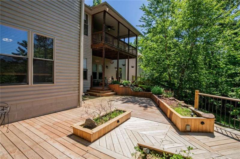 Seller is offering a $10,000 Flooring Allowance with accepted offer!!! One HVAC unit brand new! Beautiful 4-bed , 3-bath home with 3,548 sq ft in Bella Vista's scenic Lakenheath neighborhood! Enjoy nearby mountain bike trails and Lake Rayburn & Lake Ann. Main level features formal dining, spacious kitchen, breakfast nook, 3 bedrooms, 2 baths, laundry room, and covered deck. Lower level includes a large family room with kitchenette, study, bonus room, craft room with custom cabinets, office, bedroom, full bath, and custom deck with planters. Two cozy stone fireplaces add warmth and charm. Ample storage and a 3-car garage with sink complete this stunning home.