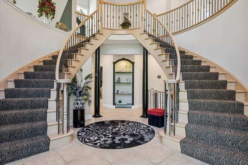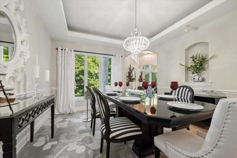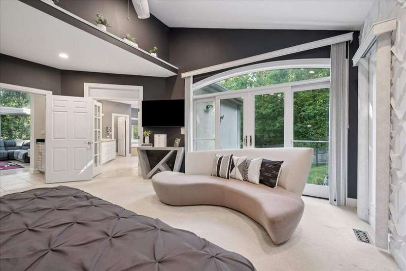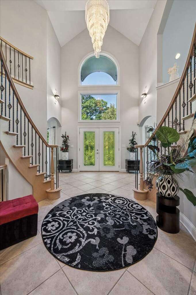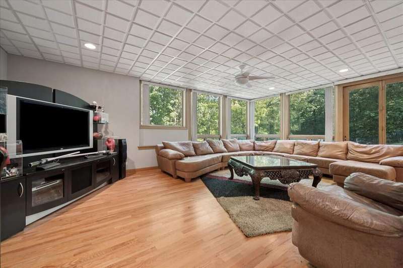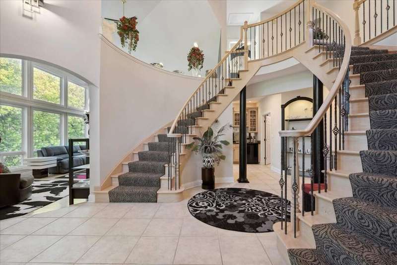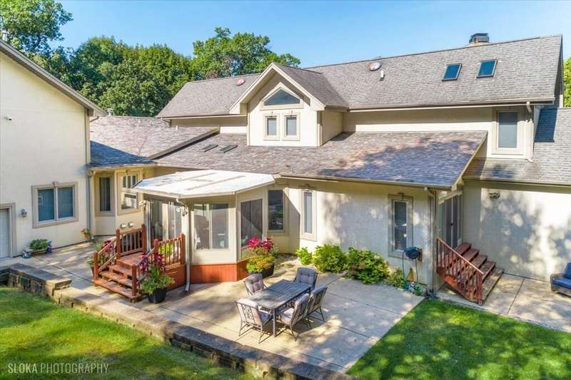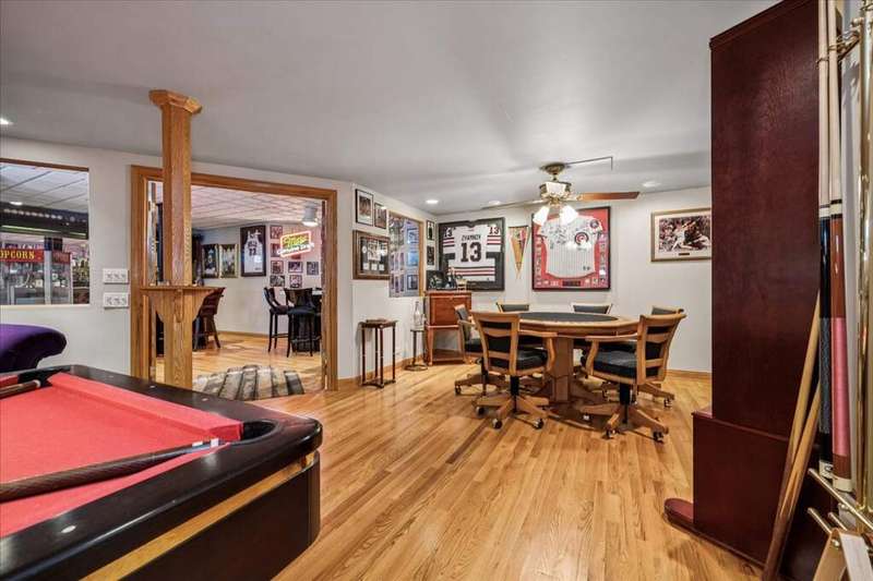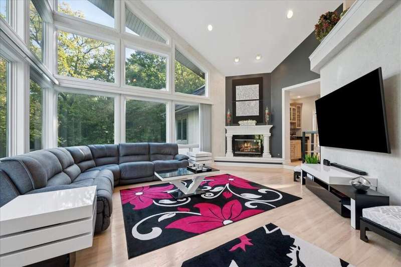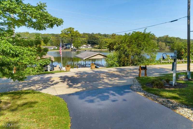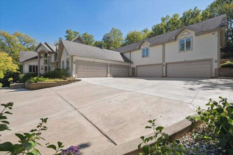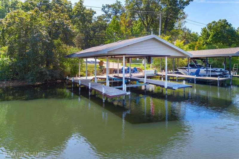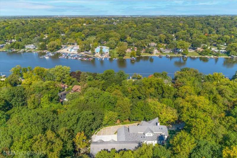 Year-round resort living & entertaining can be yours in this stunning 4 bed, 5.1 bath home with elevated lot on 1.67 acres, offering privacy, a gated entry, mature trees, 1.5 boat slips and seasonal views of the Fox River. This extraordinary property offers an unmatched blend of luxury, recreation, functionality and limitless possibilities to enjoy for years to come! With three levels of living space, the residence boasts 6800 SF above grade and an additional 2163 SF in the walk-out lower level, totaling almost 9000 SF. For the hobbyist or collector there is garage space for up to 12 cars and your own boat storage which includes a 4-car primary garage, a 4-car tandem garage (8 spaces), plus a workshop and 28 x 26 storage/exercise room. The 2200 SF above the secondary garages includes a 64 x 34 Bonus Room has in-line skating flooring and a golf simulator. There is also a large office for WFH and a full bathroom. Step inside to the open concept interior and take in the natural light and soaring volume ceilings. The grand two-story entry with a dual staircase which leads you into the dramatic Great Room with walls of glass, a large fireplace and adjacent wet-bar. The heart of the home is a beautifully appointed kitchen featuring 42" cabinets, granite counters, high-end stainless appliances and a walk-in pantry. The adjacent dining room is perfect for hosting unforgettable dinners and gatherings, while the sunroom is the perfect spot to enjoy your morning coffee or casual evenings grilling out. The tiered concrete patios offer great outdoor space including a built-in fire pit. A mudroom & separate laundry room complete the main level. The spacious primary suite is a private sanctuary, featuring a spa-inspired bathroom with whirlpool tub, walk-in shower, double vanity and excellent closet space. A second ensuite bedroom on the main level is ideal for family or guests while the upper level includes two spacious bedrooms with vaulted ceilings, a tandem bedroom/loft (currently set up as a nursery) and a full bathroom. The lower level was designed for ultimate entertainment and is fun and versatile, with plush seating arranged around a large flat-screen TV, perfect for game nights or movie marathons. A centerpiece of the lower level is a custom cherry wood bar featuring all the essentials. The game room beckons...the pool table is included and there is extra space for a game table and seating. Radiant heat flooring is an excellent add-on feature to enjoy this fun space. At the river there is a total of 85 feet of frontage with concrete docks and decking. The full pier is shared 50/50 with neighbors providing 1.5 boat slips per residence and shared decking. Your portion will include 1 full covered boat slip with an electric lift and room for a wave runner too. The home located on a small shared lane just minutes from downtown Algonquin's shops, restaurants, and small-town charm, and with easy boat access to Port Edwards, The Broken Oar, Kief's Reef, and the Chain of Lakes, this is more than just a home-it's a lifestyle. Bring your boat and embrace the river life today!