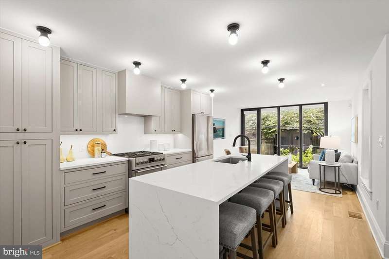 Beautifully and thoughtfully renovated, this Shaw residence underwent a meticulous full renovation in 2020, blending historic character with modern comfort. Spanning over 2,100 square feet across two levels, the home offers three bedrooms, two and a half bathrooms, and well-designed spaces for both everyday living and entertaining. Inside, a sun-filled layout features a spacious living and dining area, a fully updated kitchen with high-end appliances, and flexible rooms that adapt to todays lifestyle. The primary suite includes dual walk-in closets and a spa-like bath with a soaking tub, while two additional bedrooms share a beautifully finished full bath. High-quality details such as new flooring, upgraded systems, and custom Elfa closets throughout highlight the care and craftsmanship of the renovation. Outdoors, a stone patio and storage shed create a private retreat, while dedicated parking adds everyday convenience, all in the heart of vibrant Shaw. Perfectly situated, the home is within walking distance of grocery stores like Whole Foods and Trader Joes, as well as neighborhood favorites including Nina May, Dacha Beer Garden, and Compass Coffee. Enjoy easy access to parks, cultural venues, and the Shaw-Howard U Metro Station, making daily errands and weekend outings effortless.