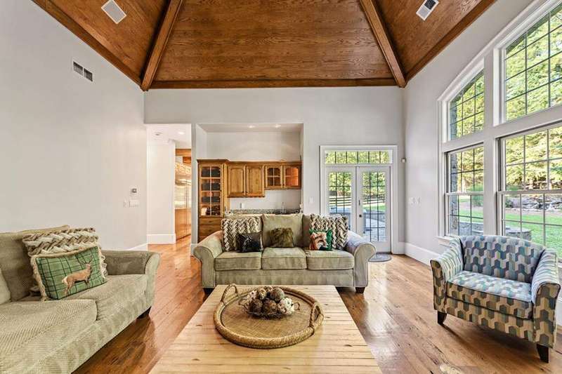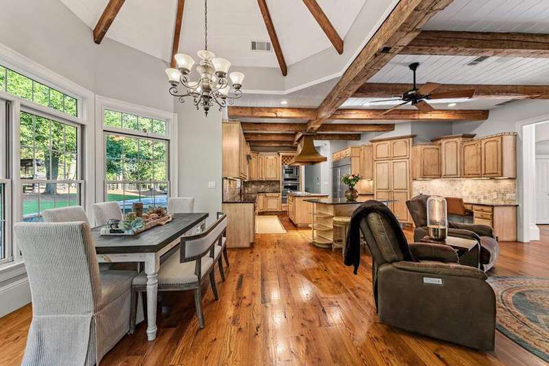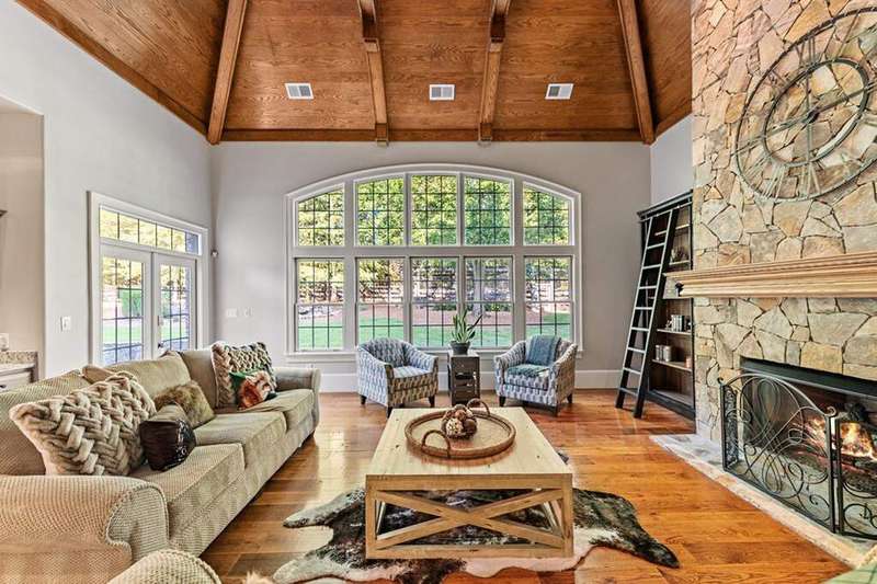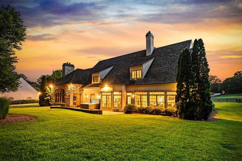 Imagine driving into your gated entry of your European Style County Estate with 4 acres of lush, manicured paddocks. After parking in one of your 3 car attached garage or perhaps parking in one of your six car detached garage with RV parking in one of the stalls and washer and dryer next to the oversized custom workshop. The detached garage can be converted into stables for an equestrian estate. Upon entry of this beautiful 8,500 square foot home, you are greeted with 120-year-old hardwoods. This home is built for entertaining with a large chef's kitchen with 120-year-old wooden beams, large breakfast room with fireplace. A two story study with custom wood paneling including ceiling and cozy fireplace. Two primary suites on the main level with 3 ensuite bedrooms upstairs and an attached guest apartment with separate entrance, full kitchen and laundry. The home features a 8-seat movie theater, wine cellar and tasting area, workout room, sauna room, large 4 season room with custom wood ceilings looking out on the pond. The main living room is expansive with beautiful fireplace, two story custom wood ceilings and wet bar making this the perfect gathering place for your guest. The outside features a beautiful pond with waterfalls, custom hen coop, hot tub and many more amenities for farm animals. The home has a separate well for irrigation and watering of farm animals making this a unique property with well and public water. This home is a smart home making lighting up the indoor and outdoor custom lighting a voice command. This amazing estate is a one of a kind, perfect for enjoying all the countryside has to offer.