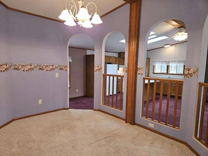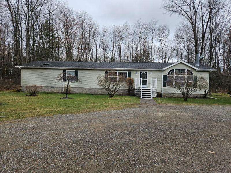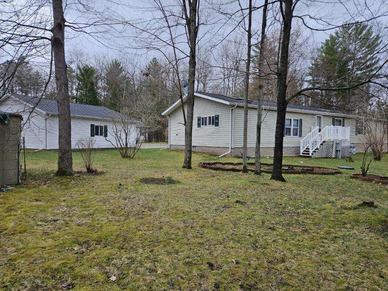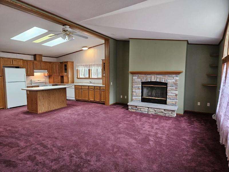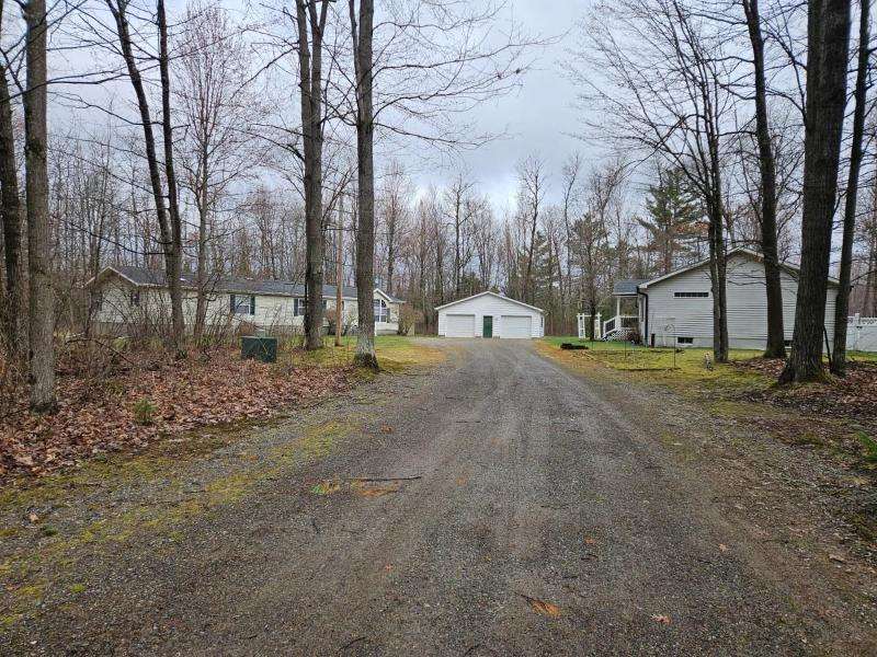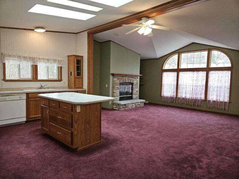 This 2100 square foot manufactured home is located on a 2.75-acre partially wooded lot with an oversized 2-car detached garage & storage shed. Inside the home, step down into the vaulted family room with woodburning fireplace. A spacious, open concept kitchen offers a center island & pantry. The cozy dining area overlooks the scenic backyard & woods, while a larger dining space is a step up near the formal living room. The primary bedroom suite provides 2 walk-in closets & a huge bathroom with shower. There are 2 additional well-sized bedrooms & another smaller bedroom that was used as an office. The laundry/utility room has access to a small deck & backyard. This home sits on a crawlspace but offers ample storage. Appliances are included.