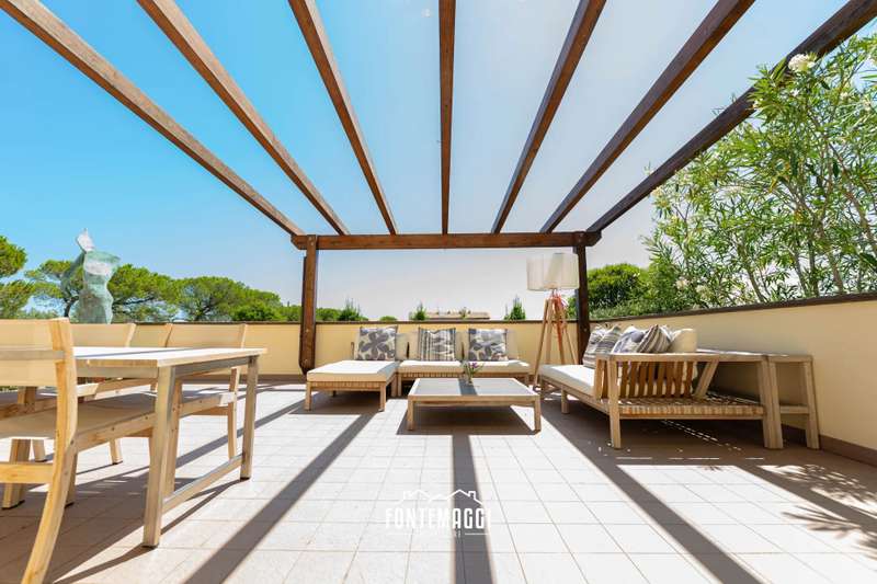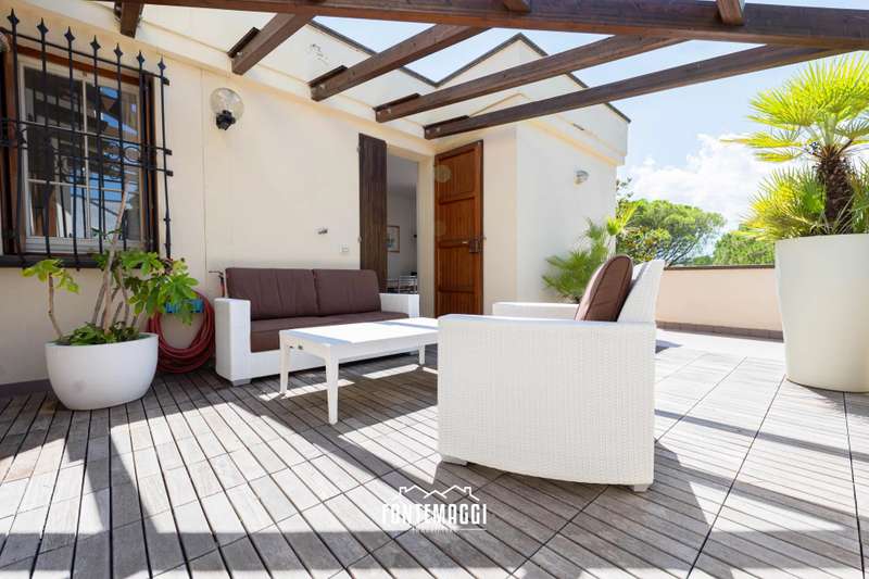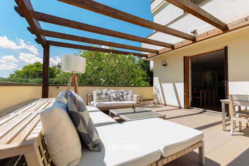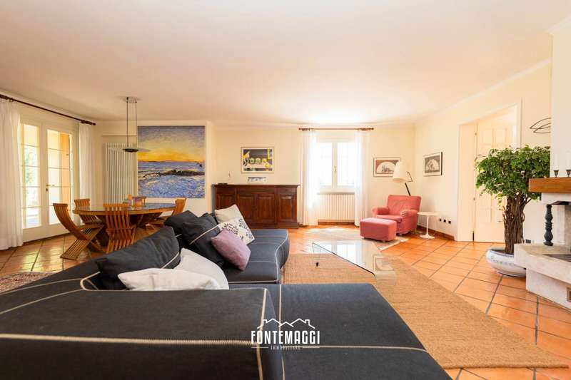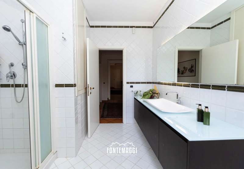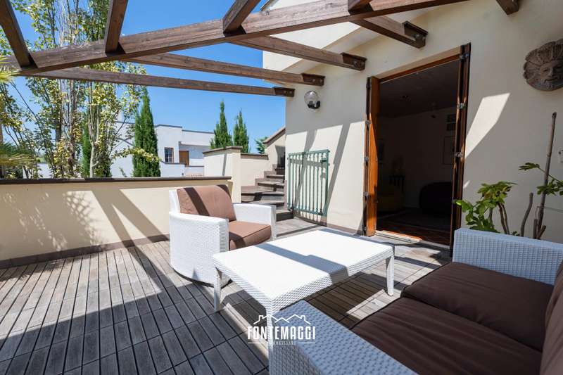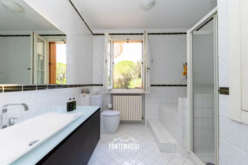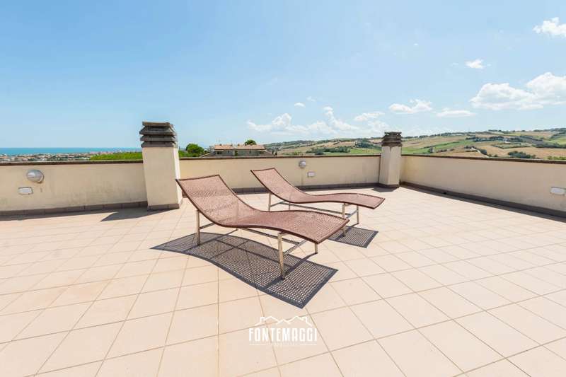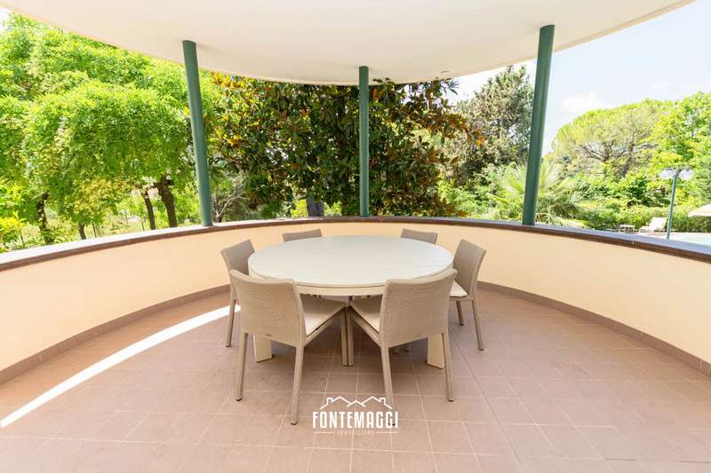 San Costanzo (PU) At 5 minutes by bike from the sea, in a hilly position with 180° panoramic view of the Adriatic Sea, from San Bartolo to Conero, easily accessible and well connected to the main roads. We offer for sale 325sqm villa built in the 90s surrounded by 1500sqm fenced park with swimming pool, garage in the basement and beautiful terrace with sea view. The property is arranged on three floors: On the ground floor of 168sqm we find a spacious living area with a large entrance hall, living room with fireplace, large bathroom, large kitchen with access to two terraces, one equipped as a living room and one as a dining room overlooking the pool. On the second floor of 155sqm the sleeping area consists of two double bedrooms with sea view balcony, twin bedroom, bathroom with shower, living room or fourth bedroom at the need with small bathroom. Adjacent to this floor is a guest area consisting of living area, bedroom and bathroom. Two bodies can be joined and have in common a terrace, which has been connected directly to the garden (an independent entrance without passing through the house). The same terrace also leads to the panoramic terrace of 120sqm with sea and hill views, ideal for enjoying moments of relaxation or celebration with friends. In the basement of 100sqm we find a garage with laundry, a cellar and a storage room with technical room. The property is completed by 19,000sqm of agricultural land, partly cultivated and partly grove. Dominant position overlooking the sea, with the possibility of getting to the beach by bicycle, well connected and easily accessible. The solution was built and used by a single family for summer and winter vacations. Concrete pillar structure, is in excellent condition, routine maintenance is required. Internally ready for use, it is sold Partially Furnished. Ideal as an accommodation facility or main residence, divisible into two or more units. Request 595,000€. "APE F" IPE: 123 kwh/sqm/year