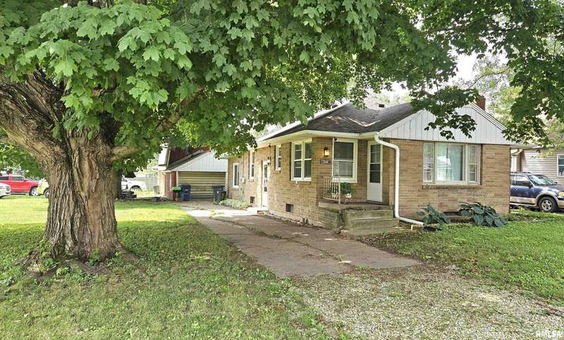 Charming 3-bedroom, 1-bath brick ranch. Located on a spacious 100' x 150' corner lot, this inviting home features a cozy, cottage-like feel. The oversized 3-car garage provides exceptional storage, workshop potential, or room for your hobbies. The attached screened-in porch off the back of the garage is ideal for relaxing evenings or summer gatherings. There is an additional16x20 1-car garage for even more storage or hobby space. Many updates!! Now has an open concept living and Center island can stay. All appliances stay as well! Seller has installed a dewatering basement system with newer sump pump. Roof in 2017, screened patio in 2025