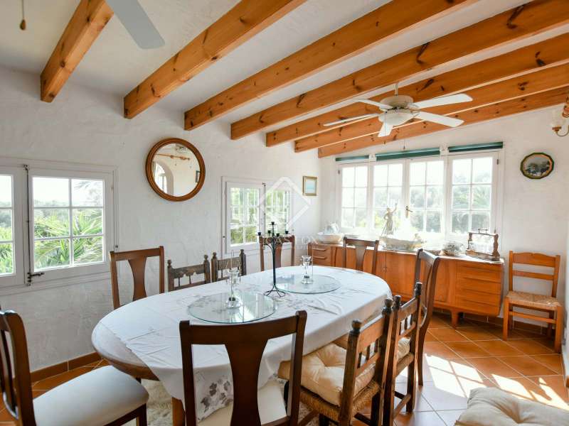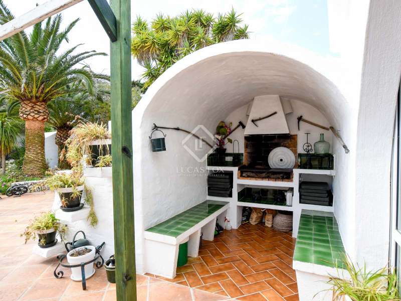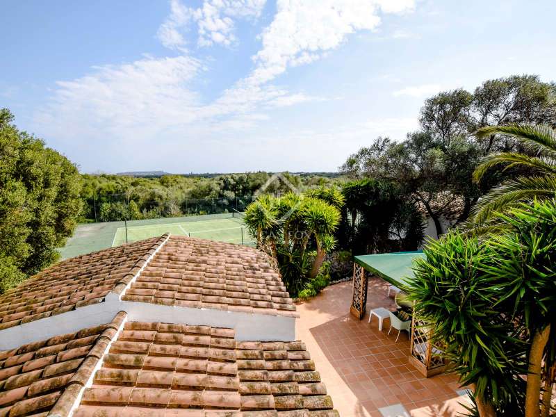 This fantastic property, comprised of a main house and several annexes, is set on a plot of 36,000 m² in Es Castell. The main house has a total built area of 626 m², distributed over two floors. On the ground floor we find the entrance hall, the kitchen, the living room with a bar area and the access to the barbecue zone, a living-dining room with a fireplace, 5 bedrooms (2 of which have en-suite bathrooms) and 7 bathrooms in total. The first floor consists of a kitchen, a living room with a fireplace, a double bedroom with en-suite bathroom and a terrace with access to the garden. Facilities are of the highest quality, among them gasoil radiators, ceiling fans and air conditioning with splits. There are also ceilings with exposed wooden beams. The house also has several terraces, porches, a barbecue area, swimming pool, petanque area, tennis court and bathroom with sauna and jacuzzi in the garden. The estate originally had 2 barns of 116 m 2, which have been converted into 3 bedrooms, 2 bathrooms, a kitchen and an outside porch with kitchen. In another annexe building we find a double bedroom and a bathroom with access to the porch. An ideal opportunity for those seeking a very spacious family home in an excellent location. The information described here is merely informative and is assumed to be accurate, however, the above data may be subject to errors, price changes or changes in conditions without prior notice.