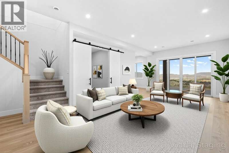 Award-winning Carrington Homes proudly presents this exceptional walk-out rancher in the prestigious Trailhead at The Ponds community, in Kelowna’s Upper Mission. This move-in ready residence offers panoramic lake, city, and mountain views from nearly every space inside and outside of the home. Step inside to discover a light-filled main floor, complete with soaring ceilings and large windows that maximize the views. The gourmet kitchen features sleek cabinetry, premium appliances, and a spacious island ideal for entertaining. The great room flows seamlessly from the kitchen and dining area, anchored by a modern fireplace and stunning indoor-outdoor transitions to the covered deck. The primary suite is a retreat, featuring a spa-like ensuite with a double vanity, a soaker tub, a fully tiled walk-in shower, and a walk-in closet. A main floor den, powder room, and double car garage add functionality. The walk-out lower level impresses with 10-foot ceilings as well. You'll find two additional bedrooms, a full bath with double sinks, a large recreation room perfect for a pool table, a cozy family room, and a flex space ideal for a gym, home office, or media room, plus ample unfinished storage. The backyard is pool-ready and offers space for a hot tub to fully enjoy Okanagan summers. Situated in one of Kelowna’s most sought after luxury neighborhoods, this property is just minutes from highly-rated schools, the new Village Centre, hiking and biking trails, and future commercial amenities, offering a balanced lifestyle of nature, convenience, and luxury. Simply more in and enjoy Kelowna Life. (id:7434)