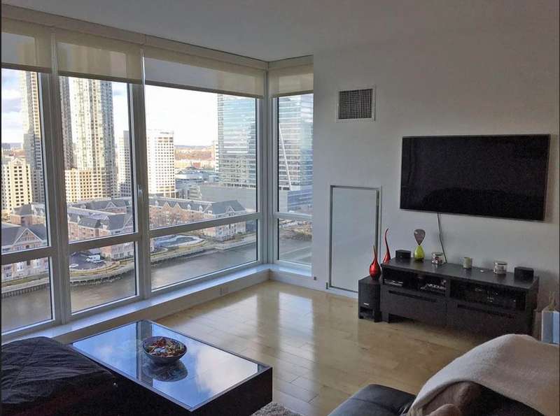 Beautiful, spacious 1BR available for rent at Crystal Point. This unit gets amazing natural light and has stunning sunset views. Features ultra sleek Kitchen, oversized, spa-like bathroom, high end imported finishes throughout, and lovely hardwood floors. W/D in unit and Hunter Douglas blinds. Light Rail/PATH just steps away. Building boasts a prime waterfront location, 24hr concierge, pool, spa, gym, etc. One valet garage parking space included.