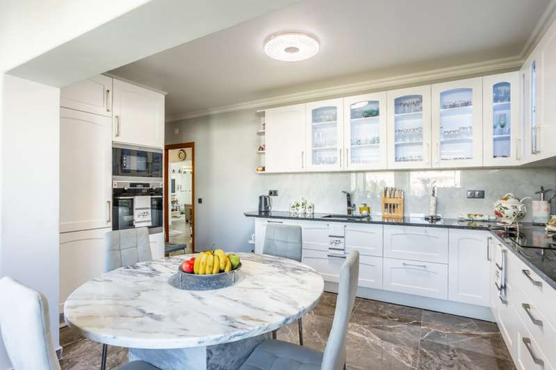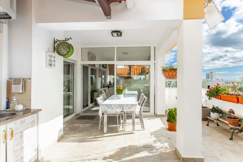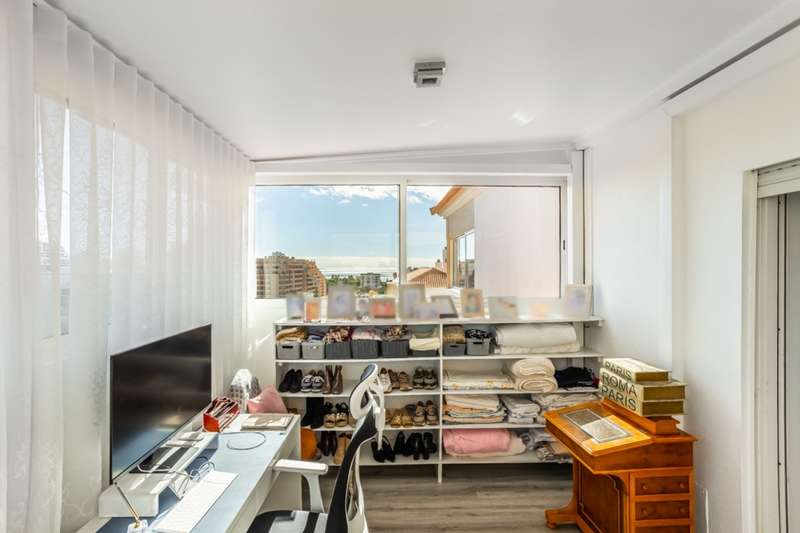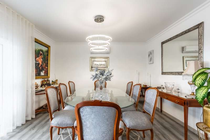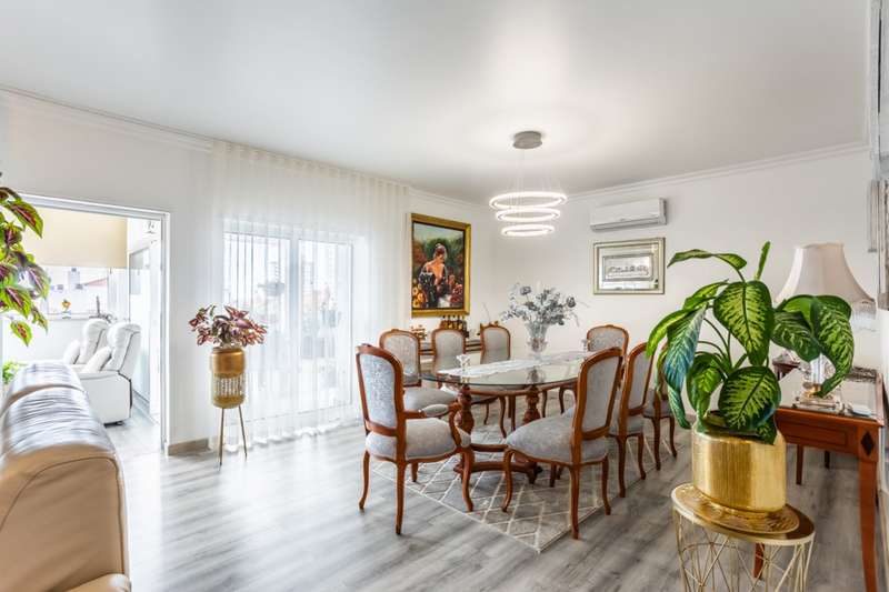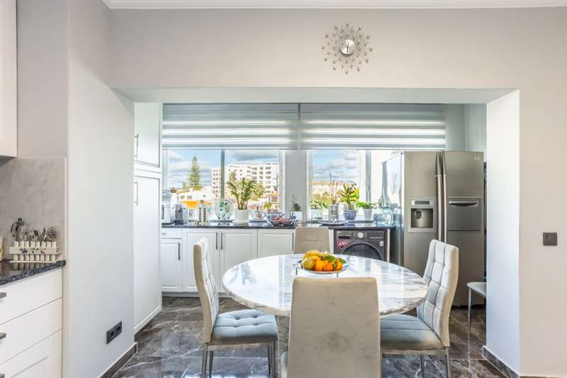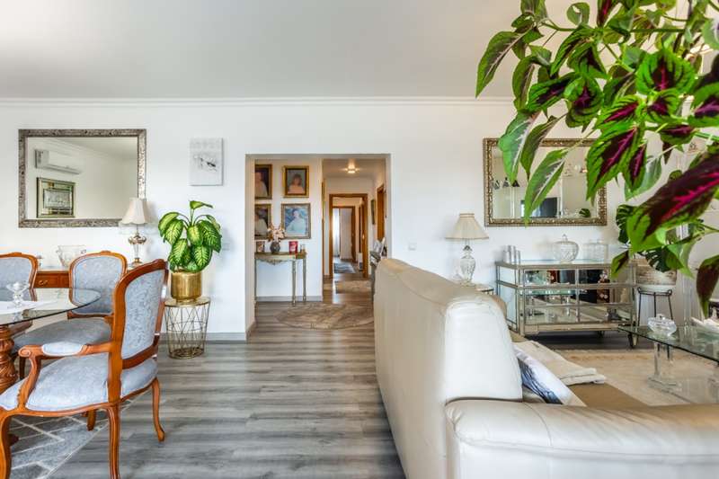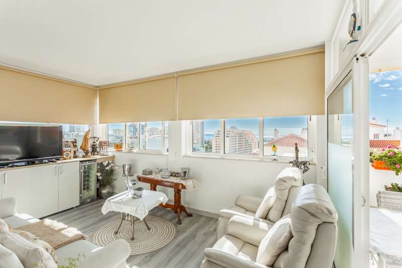 A recently refurbished4-bedroom penthouse with a modern and elegant design, it is located on the fourth floor of a private condominium with two elevators, in a quiet residential area on the coastal strip of the city of Portimão, the renowned Praia da Rocha, in the Algarve. The south-facing building offers extraordinary views of the sea and the entire coastline of the Praia da Rocha area, which is less than 600 meters away from the beach. The apartment, on the top floor, benefits from large indoor and outdoor areas, with private balconies, one of which is enclosed and has a barbecue, creating a perfect space for socializing and enjoying the region's fantastic climate. Upon entering the property, it opens directly onto a spacious entrance hall, on the left side of which is the fully equipped and renovated kitchen with a dining area and a pantry, and on the right is the spacious formal living and dining room with a fireplace and fantastic sea views, maximized by the large sliding glass doors that fill the room with natural light. The wide hallway leads to the 4 generously-sized bedrooms, all with built-in closets with sliding mirrored glass doors. The master bedroom has an en-suite bathroom. Also located in this corridor are two bathrooms. The apartment is equipped with air conditioning in the living and relaxation areas, has two parking spaces in the garage and exclusive access for residents to the condominium's swimming pool and garden. Within walking distance of the beach, all the essential amenities and services are located nearby, such as restaurants, bars, shops and recreational or sporting activities. The marina, several beaches and golf courses, the picturesque villages of Alvor and Ferragudo are all within a 10-minute drive, and there is easy access to the N125 national road and the A22 freeway. CHARACTERISTICS:Area: 230 m2 | 2 479 sq ft Useful area: 121 m2 | 1 297 sq ft Bedrooms: 4 Bathrooms: 3 Garage: 2 Energy efficiency: C FEATURES: Renovated 4 bedrooms Equipped kitchen Balconies Air conditioning Fireplace Barbecue Garage Swimming pool Garden