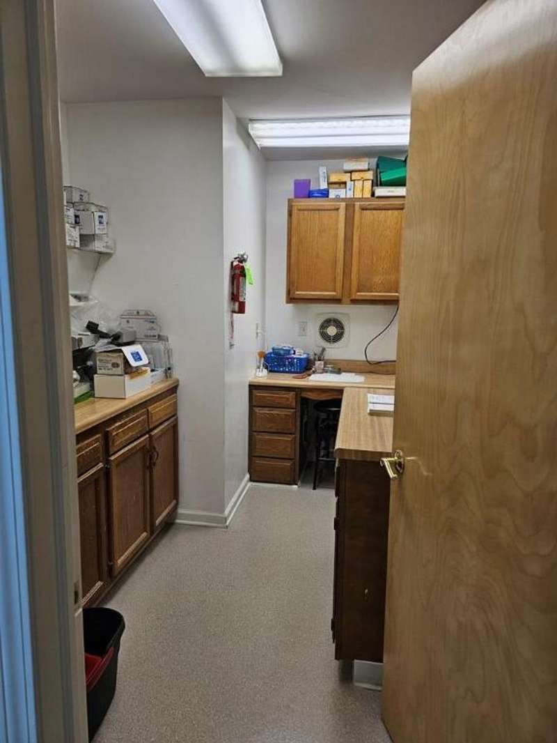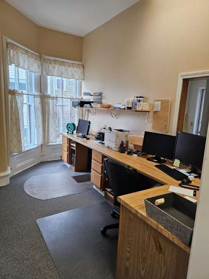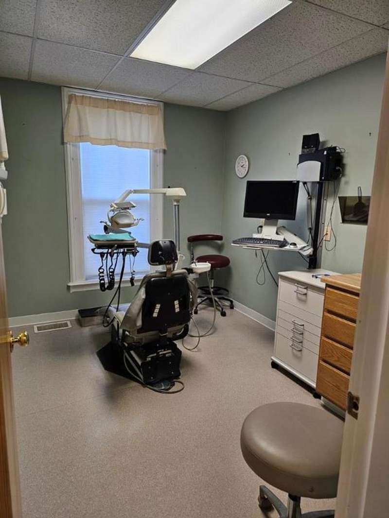 Business opportunity with second floor apartment. Wonderfully maintained building, wait room, breakroom, seven exam rooms, two bathrooms and plenty of storage space. There is an upper apartment two bedrooms, one bath with large rooms and well cared for. Separate utilities, A/C, updated electrical, new roof and off street parking. Lower level is large enough to split into two separate units, giving you a total of three units; if buyer wanted to make the changes.