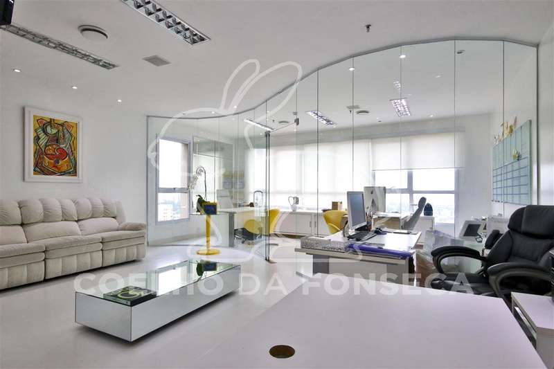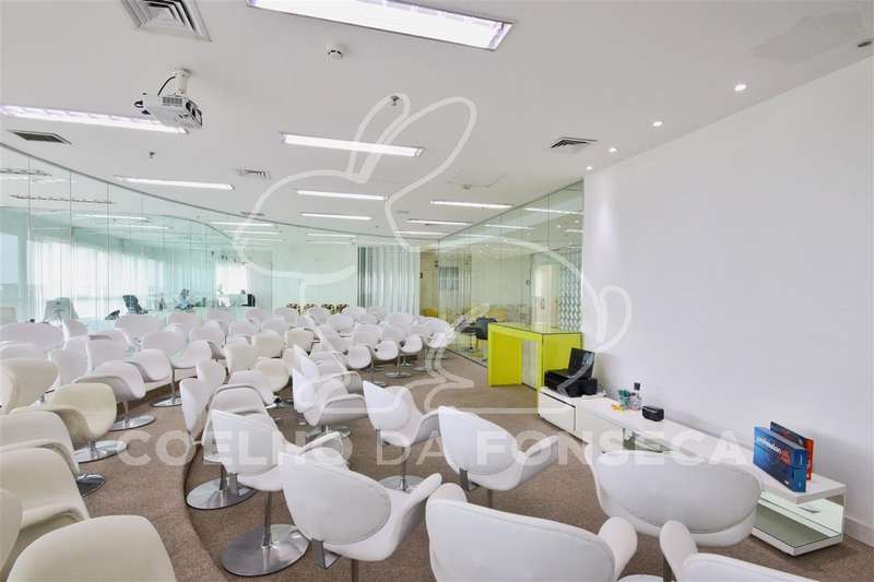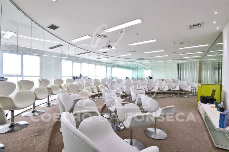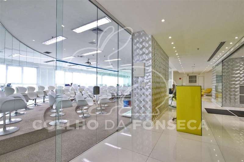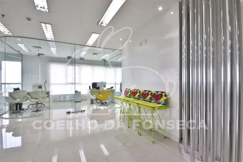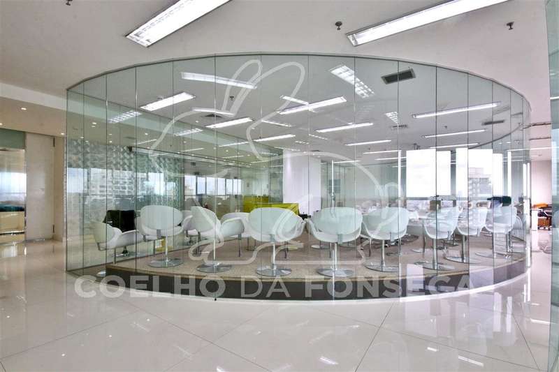 Maravilhosa sala, andar alto, laje única, vista infinita de todos os lados, em prédio com Shopping anexo. Amplo salão com auditório, salas de diretoria e de reunião, divisórias todas em vidro com acabamento de altíssima qualidade, moderno e clean. 8 vagas fixas de garagem. Sua empresa ficará muito bem instalada aqui, impressionando Clientes, Fornecedores e Colaboradores. Excelente oportunidade e ótimo investimento. Permuta de até 50% em casa em Alphaville!!