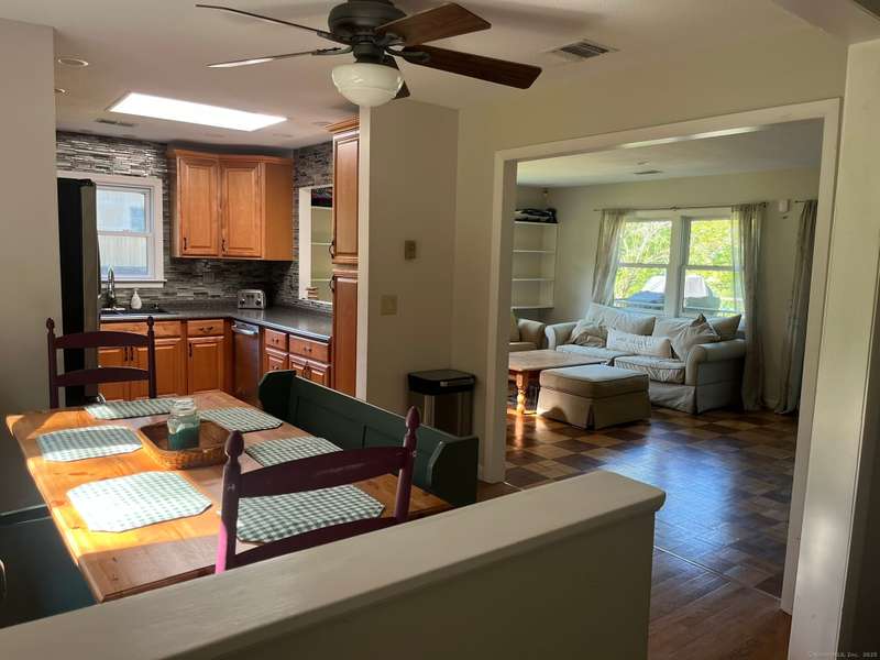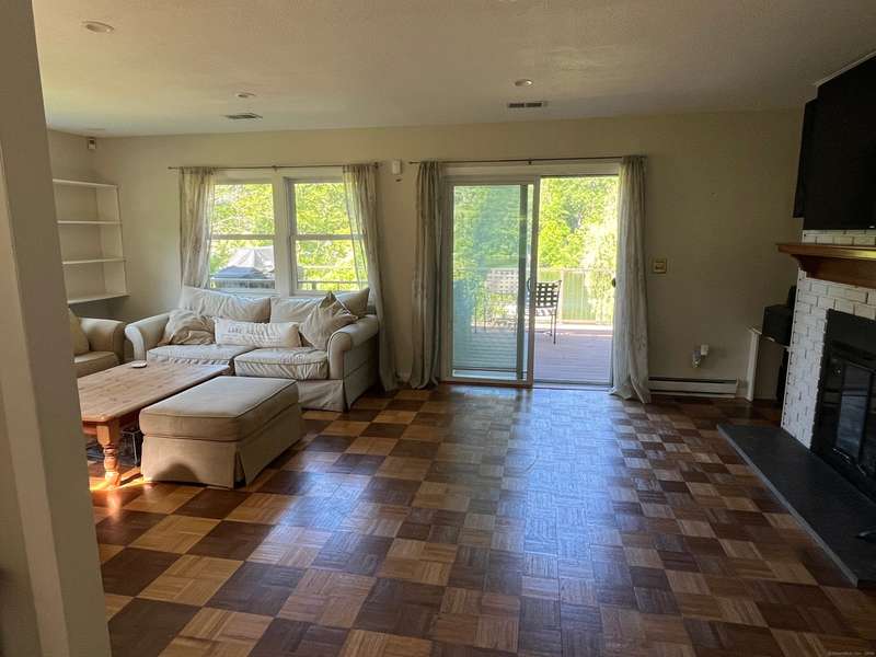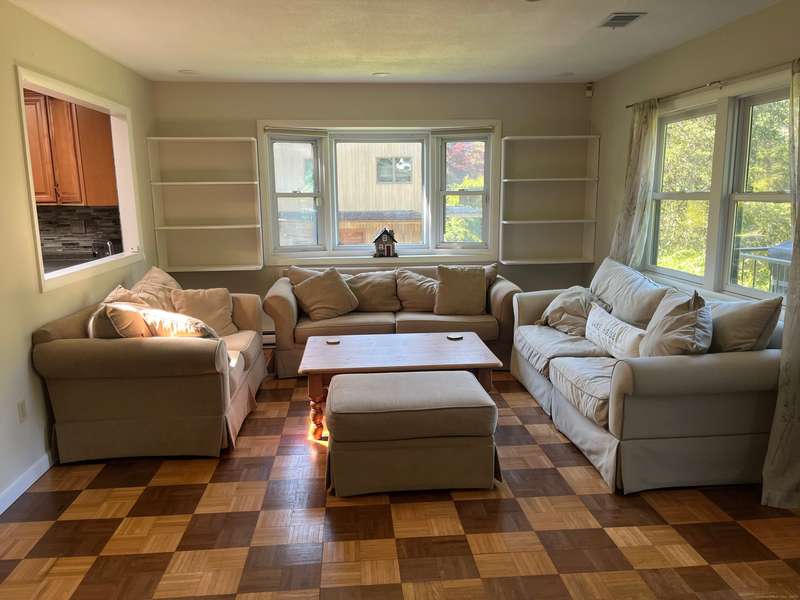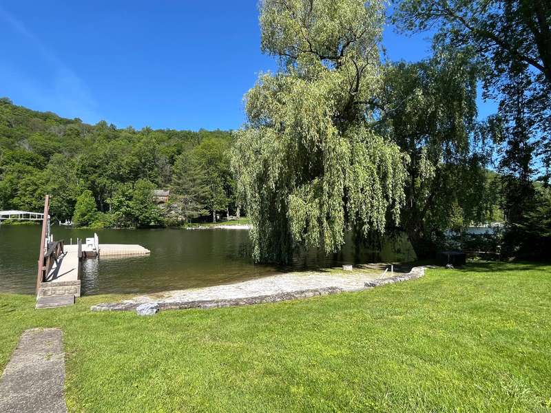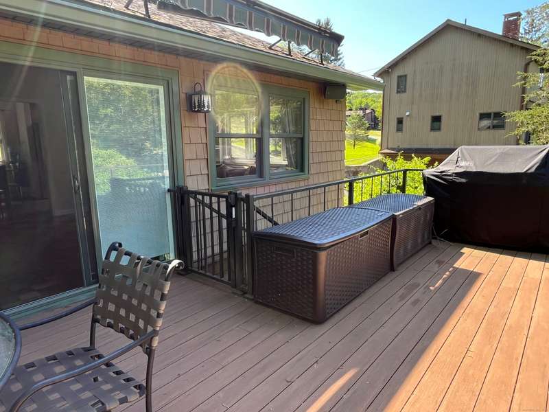 Pull into the end of the cul-de-sac and enjoy your just under half acre of privacy with 100' DIRECT LEVEL WATERFRONT on Squantz Pond in the private lake community of Pinewood Shores. Pinewood Shores has a community beach to socialize or embrace the privacy and exclusivity of lakefront living w/your own large private sandy beach with large dock for multiple water toys. Easy living in this furnished Ranch home with an open Eat-In Kitchen and living area. Step through the sliders to a spacious deck boasting a hot tub and access to under deck patio and big back yard beckoning you to the water. Step down the hall for your main level bedrooms with a modern and sleek updated full bath across the hall. Find your large Primary Suite with an updated bath at the end of the hallway for your privacy and enjoyment. As you enter the home there is a large mudroom and separate entrance to the finished lower level with walk out to the back yard. You'll find lots of sleeping arrangements plus an office option with a large family room and your laundry in basement. Enjoy lake life in an idyllic peaceful setting through the seasons for an Academic rental of Sept. - end of May (open to flexible lease term beyond that).