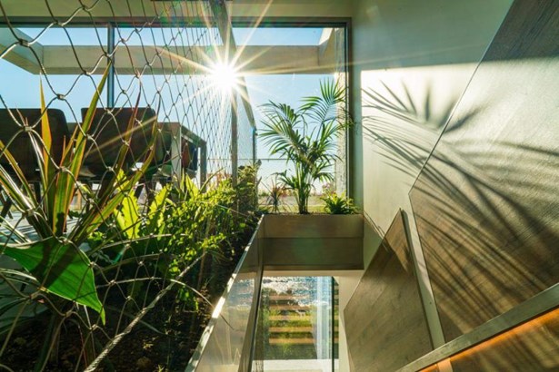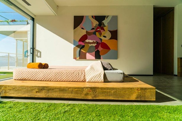 The magnificent three levels property has 5 bedrooms, 6 bathrooms, a 200 m² terrace, an outdoor area with a garden, a 77 square meters size infinity pool with overflow edge and Jacuzzi.