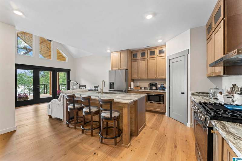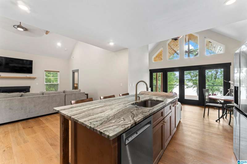 Gorgeous 2024 - built lake home featuring 3 bedrooms and 3 full baths. The main floor offers 2 bedrooms, 2 baths, a spacious living room, dining room and laundry. The finished basement includes an additional bedroom, full bath, den, safe room, storage, and garage. Enjoy stunning lake views from the partially covered deck spanning the back of the home, or relax on the covered patio off the lower-level den. Additional features include an outdoor shower, boathouse with deck and direct access to the community pool and clubhouse next door.