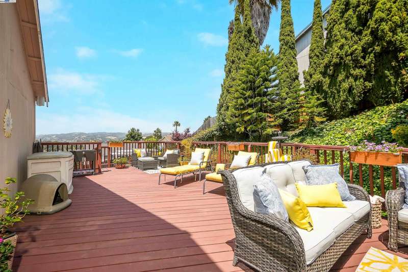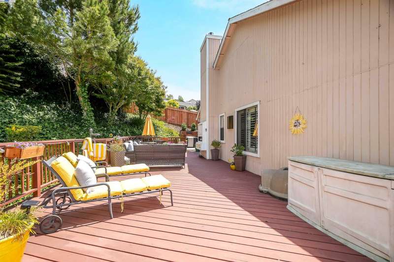 Welcome to Your Dream Home at 23380 Lakeridge Avenue.PRIME Corner Lot! for extra privacy. This beautifully updated 3-bedroom, 3-bathroom home (1,615 sq. ft.) offers charm, comfort, and a true sense of pride in ownership at every turn. Nestled in the desirable Hayward Hills within the Fairview neighborhood, this residence is move-in ready with thoughtful upgrades throughout. Step inside to a modern, light-filled interior featuring a refreshed layout, designer color palette, recessed lighting, plantation shutters, skylights, and laminate flooring throughout. The open-concept kitchen and family room—complete with an electric fireplace—creates a warm and inviting space, perfect for both relaxed evenings and entertaining guests. It’s truly the heart of the home. A flexible bonus room on the lower level includes a full bath and closet, offering potential as a 4th bedroom, home office, gym, or additional family room—you decide! Step outside to your private backyard oasis. Enjoy mature landscaping, deck lighting, and serene greenery that backs up to the property. Your perfect setting for the beautiful evening sunsets. NO OPEN HOUSE THIS WEEKEND.