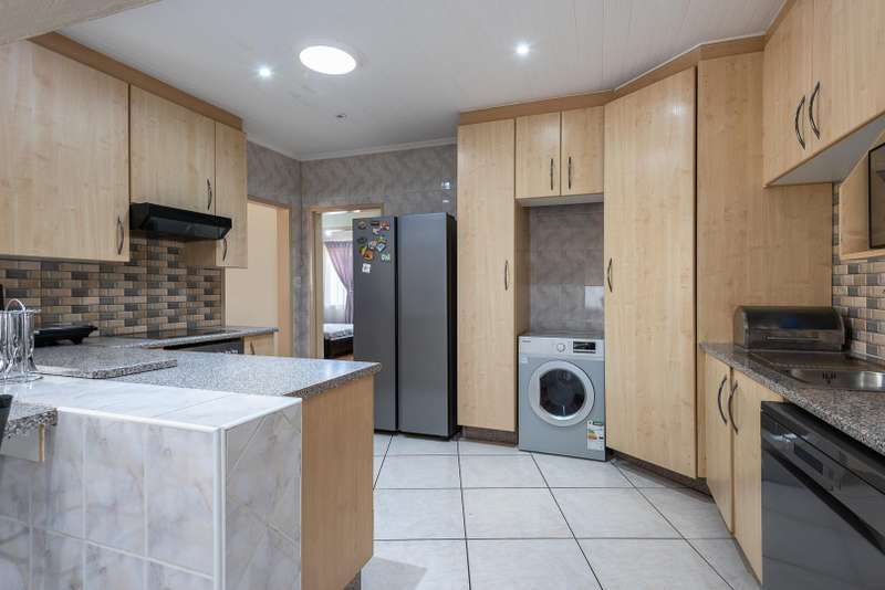 RARE TO FIND!!! Well nestled in the heart of Meredale designed to perfection with a modern look that will wow you as your first impression. This stunner offers a beautiful set entrance hall that leads to your open plan living areas consisting of 3 lounges, perfectly set up, all with fireplaces for winter days, one with sliding doors overlooking entertainment area, dining area adjacent to a lovely fitted chef?ÇÖs kitchen with a breakfast nook, gas top hob, electric oven and separate scullery. This home offers 4 spacious bedrooms including the luxurious main bedroom with walk in cupboard plus extra built in cupboards, downlights and sliding door to the swimming pool and lapa, braai place. 2 Other bedrooms have built in cupboards, laminated floors and share a bathroom which has ultra modern finishes consisting of shower, toilet and basin. The 4th Bedroom has its own en-suite. This can be used as a guest suite. This beautiful family home has extra additional features, such as fully fitted study, little courtyard, security systems, automated gates, double garages and carports and all this is set on a well manicured garden. This home has excellent neighbourhood and is easily accessible from all surrounding major roads. Don?ÇÖt miss out!!! *Extreme care has been taken to ensure that all representations contained in this advertisement are accurate and is provided on an ?Ç£as is?Ç¥ basis with no guarantees whatsoever. The representations herein has not been compiled to meet a Purchaser?ÇÖs individual requirements and it remains the Purchaser?ÇÖs sole responsibility to inspect the property duly prior to entering into any purchase agreement. The representations herein does not constitute the terms of sale as the images and descriptions are merely indicative. Chas Everitt assumes no responsibility for any errors and we reserve the right to correct/change/update the advert at any time without prior notice.*