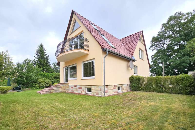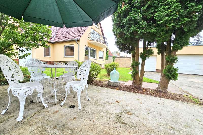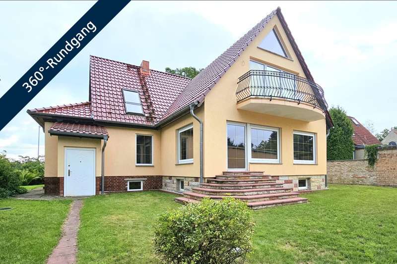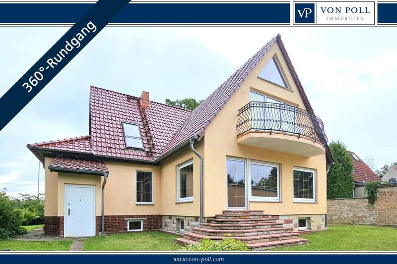 Built in 1935, this solid single-family home combines historical charm with modern substance - and at the same time offers space for your individual expansion and design ideas. Significant modernization work was carried out between 1995 and 2014, including a large extension, wood gasification heating with hot water preparation, new windows with double glazing, roller shutters, the entire roof including extension and the façade. With around 203 m² of living space and an additional 91 m² of usable space in the full basement, this is a spacious home with 5 rooms, a fitted kitchen and a bathroom with bathtub. Particularly impressive are the west-facing panoramic windows, which offer a fantastic view of the garden. The stylish balcony is perfect for long evenings at sunset. Inside, real wood parquet flooring, tiles and vinyl flooring create a homely ambience. Despite extensive modernization measures, these have not yet been fully completed - an advantage for buyers who want to finalize their personal dream home according to their own ideas. The electrical system is partially outdated. As a precaution, we would like to point out that the rising groundwater level can lead to damp in the basement in the event of extreme flooding of the Havel. In addition, the conditions of the building permit (e.g. renewal of the existing septic tank) must be observed and implemented in full. The property comprises an exceptionally large plot of approx. 5,000 m² (two parcels). In addition to a well-kept front garden and a prestigious driveway, there is a spacious, park-like garden area of approx. 3,000 m² with paved paths, a fountain and an idyllic orchard with cherries, plums, pears, apples and peaches. A solid double garage and a carport are available for vehicles. The generous roof areas are a particular plus point, offering ideal conditions for a future photovoltaic system. The plot on the right also offers potential for a new building or partial sale as building land - subject to official approval. The location impresses with its tranquillity and proximity to nature - among other things, there are three lakes (Beetzsee, Bohnenländer See and Gördensee) in the vicinity, which open up numerous leisure and recreational opportunities. Note: Once you have completed your contact details, the brochure will be sent to you automatically. Please contact us for further information and a viewing appointment. To get an impression of the property, we cordially invite you to take our virtual 3D tour.