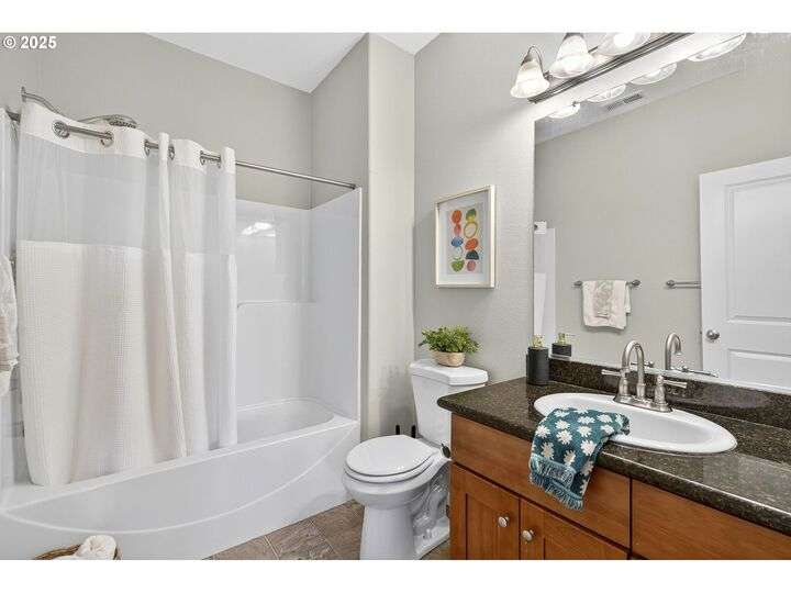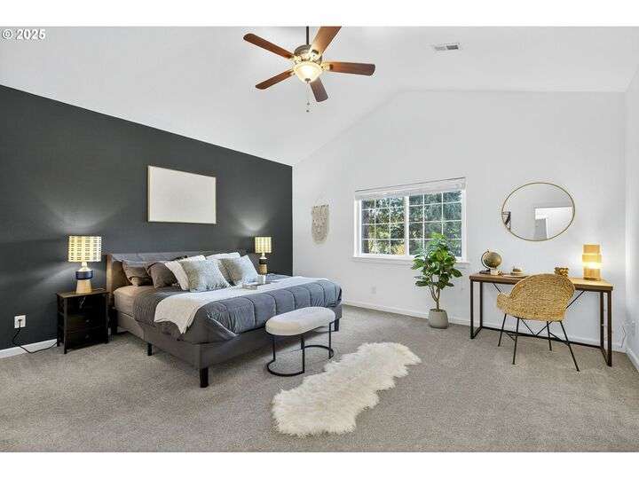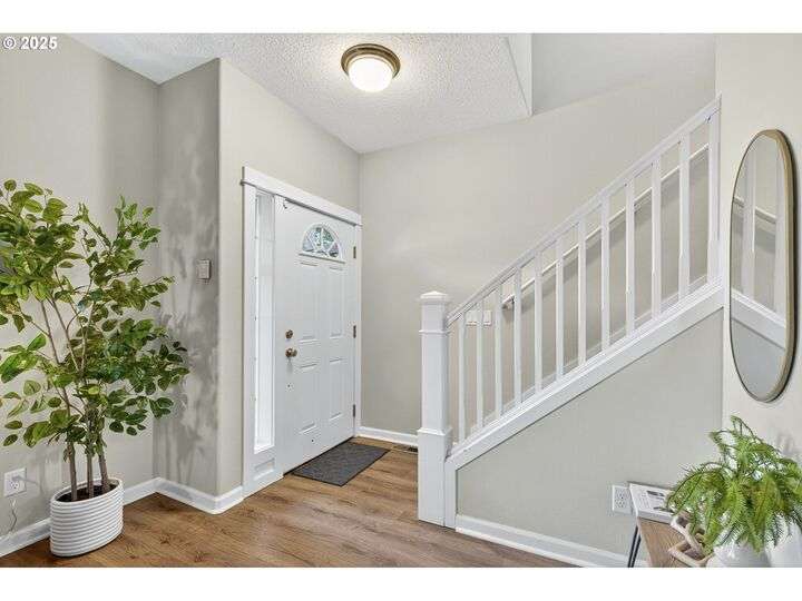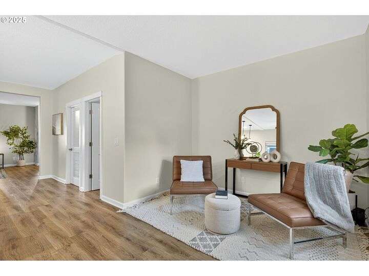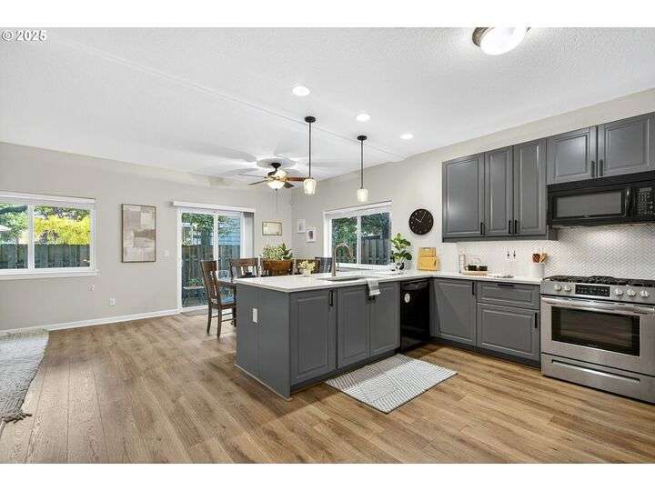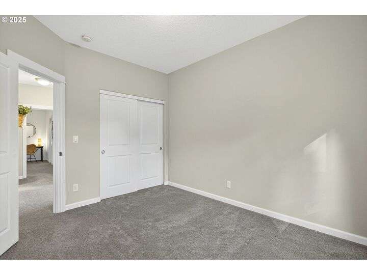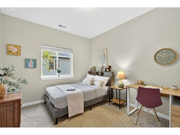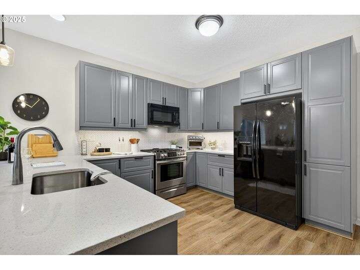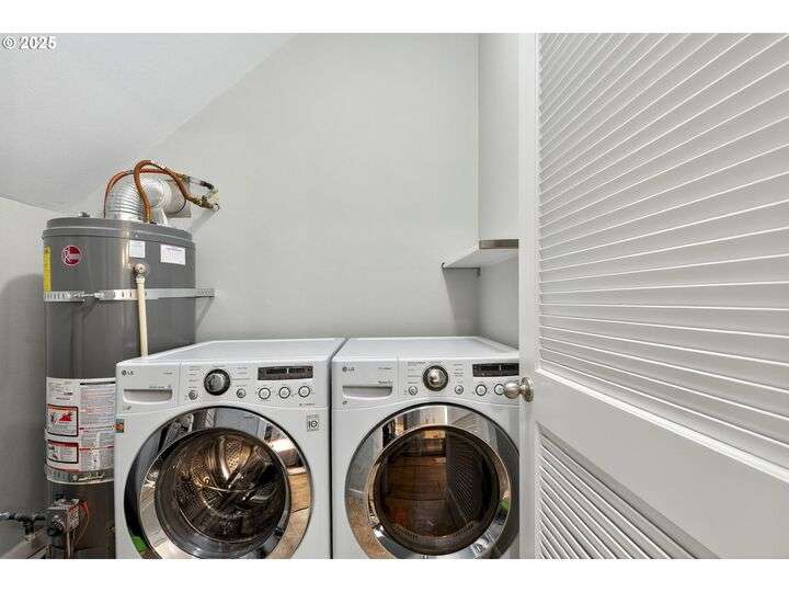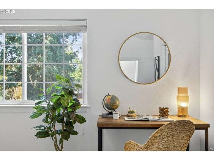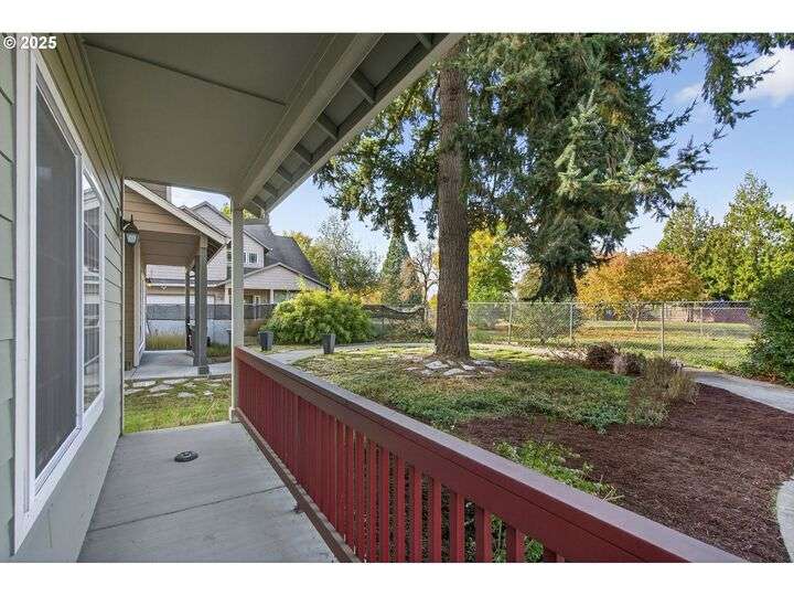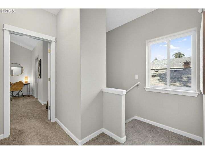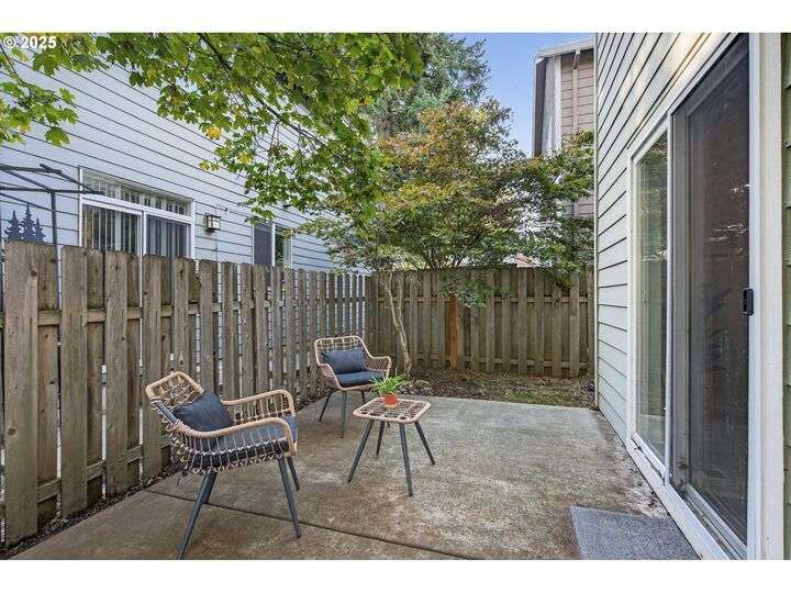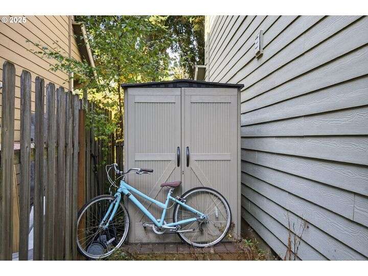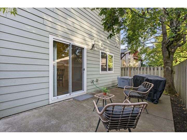 Tucked back off of Duke in a quiet community of 4 homes (without an HOA) this easy-to-love 3 bed/ 2.5 bath contemporary makes modern living feel inviting. From the moment you spot the pop of red trim and bold front door, you know this home has personality and practicality. Step inside to find high ceilings that make the home feel larger than its sq footage. In the living room sunshine streams through a large picture window and then flows to the open kitchen/dining and a charming nook/home office/playroom space. Style meets function in the kitchen, with sleek gray cabinetry, quartz countertops, and stainless-steel appliances ready for anything from Sunday pancakes to full-blown dinner parties. There’s plenty of prep space, smart storage, and a roomy breakfast bar that naturally draws everyone together. The adjacent dining area opens to the backyard, making it easy to keep the conversation flowing indoors and out. Laundry room with included large-capacity washer/dryer is also on the main.Upstairs is your large primary suite with a walk-in closet that overlooks the park. Two additional bedrooms are upstairs as well as a shared bath. Outside, the private fenced patio and side yard also offer a storage shed and just enough space for the dog, the BBQ and a bit of outdoor living. Each home has a its own front yard space too. Steps to Brentwood City Park, 14 acres of soccer and football fields, dog park and more. Blocks to schools, shops, restaurants. Biker's Paradise score = 93. [Home Energy Score = 6. HES Report at https://rpt.greenbuildingregistry.com/hes/OR10185658]