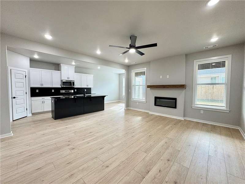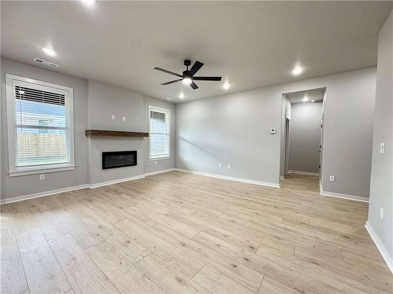 Fence, blinds and gutters included! Discover your dream home in the sought-after Osage Hills neighborhood. Clinton plan with garage on the right & North facing! 9 ft ceilings, linear electric fireplace in the living room, LVP flooring throughout the main living areas and primary bedroom, quartz countertops and more. Chef's kitchen boasting frigidaire stainless steel appliances, gas range, pantry, quartz countertops, bar pull handles, large island and gorgeous backsplash. Luxurious primary bedroom features abundant natural light, while the spa-like primary bathroom offers a walk-in shower, double sinks and spacious walk-in closets. Two secondary bedrooms on the main level, a 4th bedroom upstairs that would be a perfect bonus room & a separate laundry room. Nestled on a generous lot with covered patio that overlooks the serene sodded, fully fenced backyard. Sturdy concrete siding & brick! Model home located at 6008 SW Coywolf St- Lot 122.