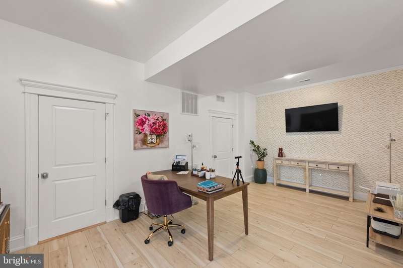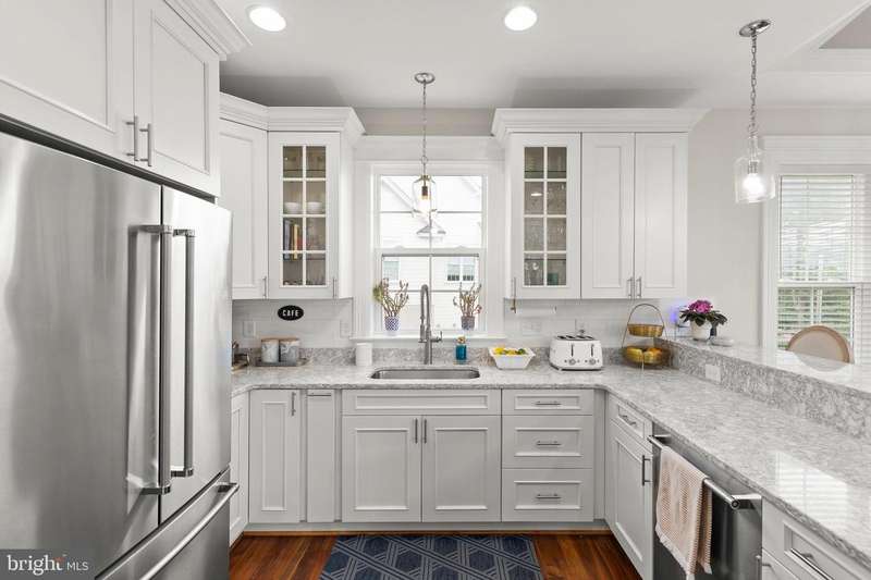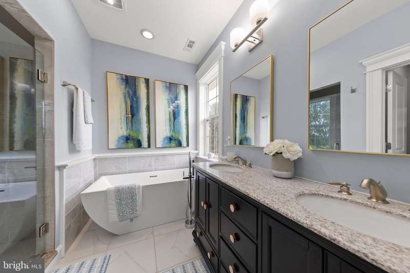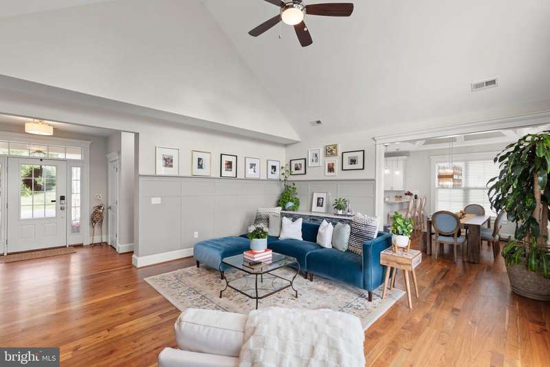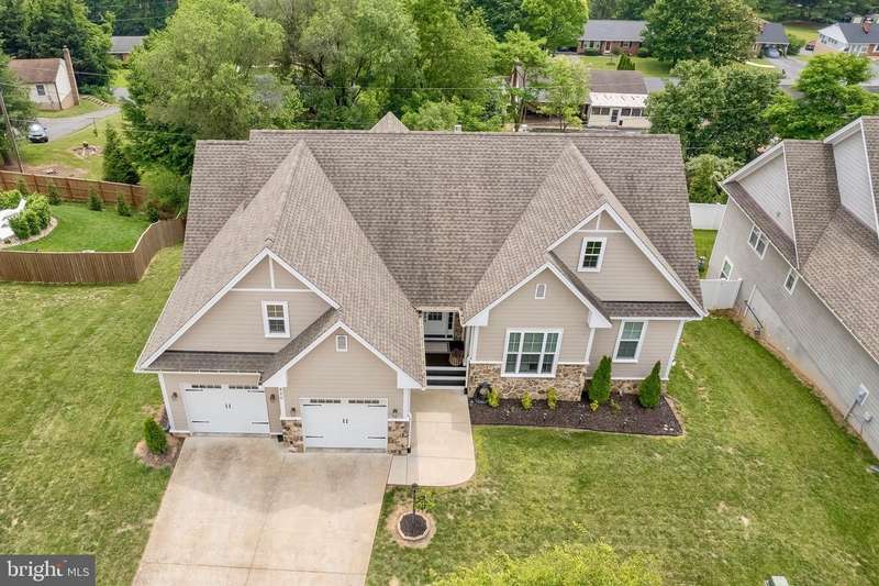 Experience generational refined living in this stunning luxury home just minutes from Winchester Medical Center. Designed for both elegance and comfort, this residence boasts exquisite crown moldings, rich wood floors, wainscoting, and cathedral ceilings throughout. The main level offers one-level living with an entry-level bedroom, a spacious gourmet kitchen with upgraded quartz countertops, and a gas fireplace framed by a marble mantel for cozy evenings. Entertain effortlessly with a wet/dry bar, complete with a wine cooler, and a fully finished walkout basement ideal for a separate living space or guest suite. Step outside to a newly built fire pit and patio, or relax on the back deck surrounded by serene views. From the front of you home your view will a new 2.4 acre park. The oversized garage features a coated floor and ample storage. Smart-home touches like the front door smart lock enhance both convenience and security. This home seamlessly combines luxury, function, and location.