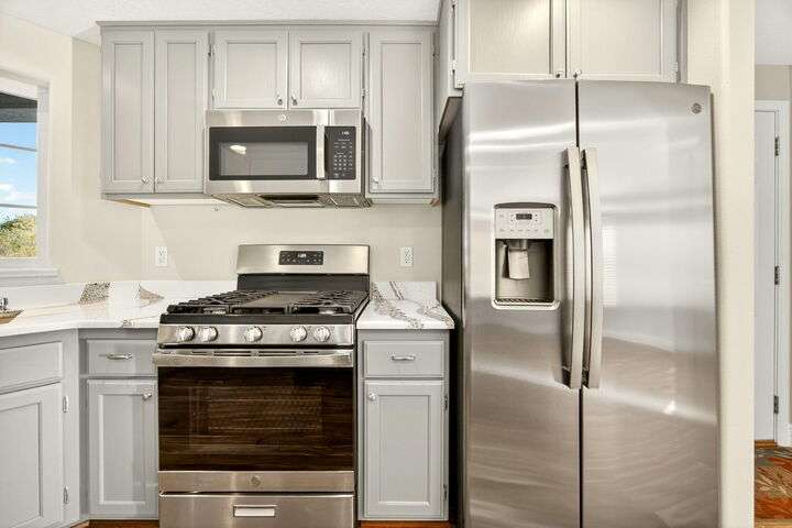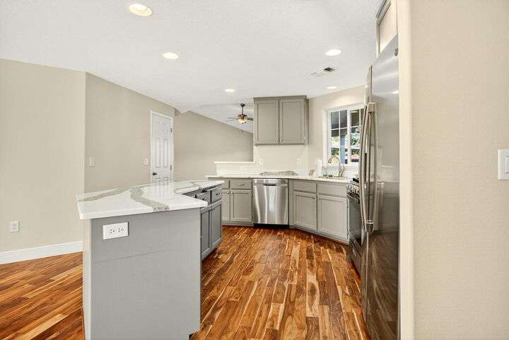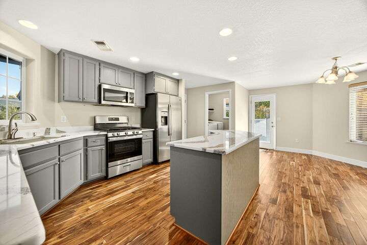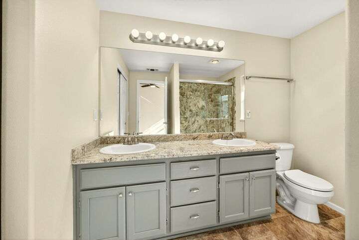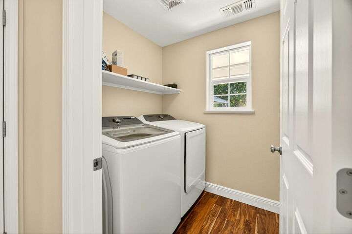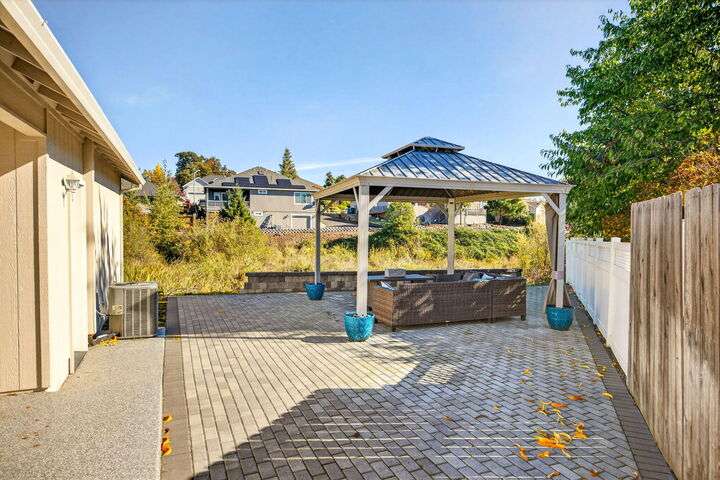 Come home to your private oasis! Relax under your large gazebo with backyard views, great for BBQs and entertaining. Custom built home has been completely upgraded, interior and exterior. Added pavement to the front driveway provides plenty of parking. Completely remodeled backyard w/new terraced concrete for low-maintenance care, enjoy your garden w/raised beds, and newer fence. Bright remodeled kitchen with a large island, beautiful granite counters, and all newer appliances. Nice, open floor plan with newer hardwood floors, carpet, and vinyl. Living room has vaulted ceilings. Newer windows have marbled sills. Each room has high ceilings with fans. Master bedroom has his and hers closets, a remodeled ensuite bathroom, w/ granite countered, dual vanities, and a marbled step-in shower. Guest bath upgraded newer vanity and granite counters. The laundry room features a newer washer and dryer. Outdoor furniture included. Attic fan is solar-powered. Move-in ready! No drive-bys